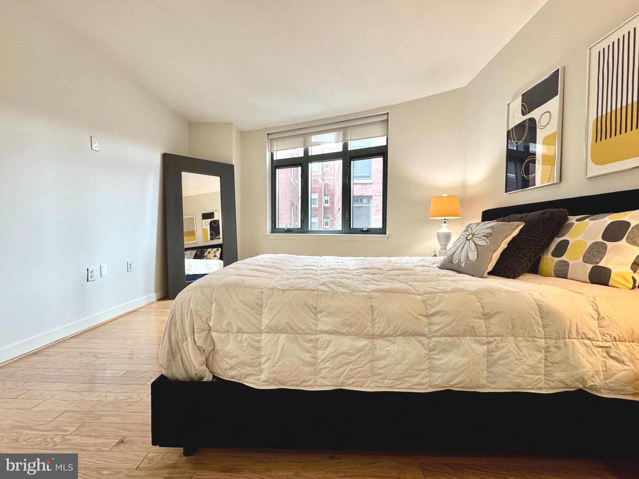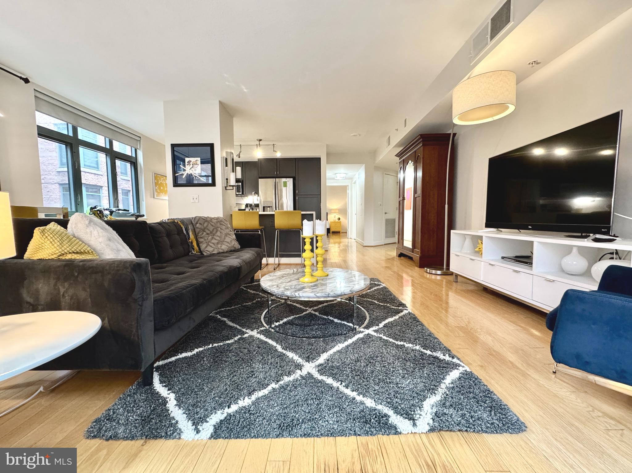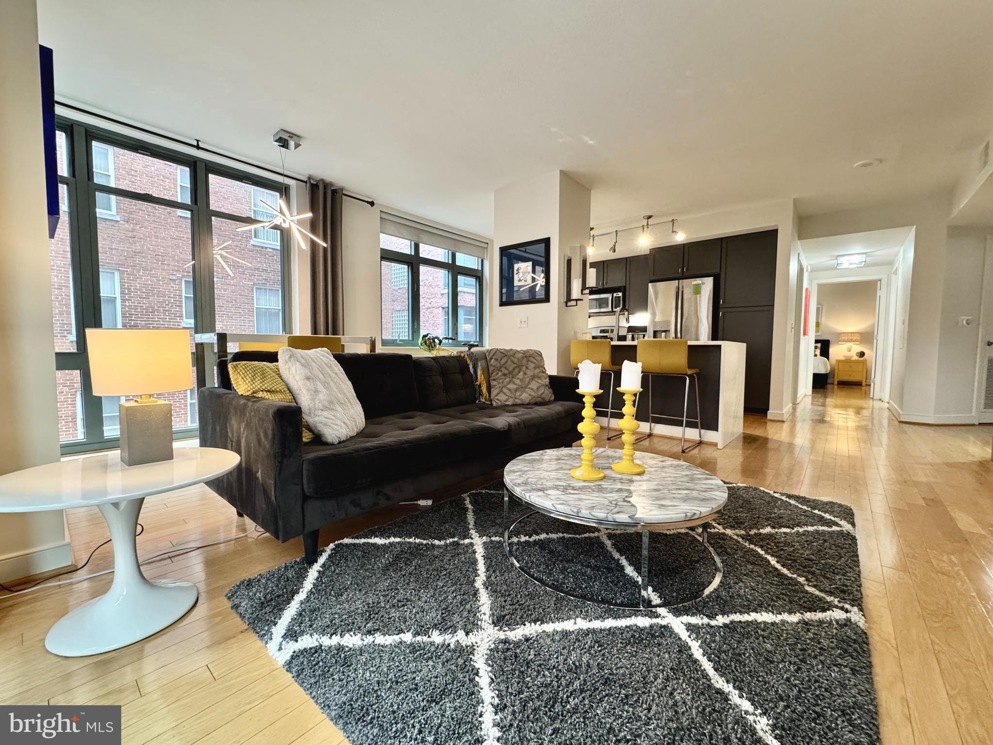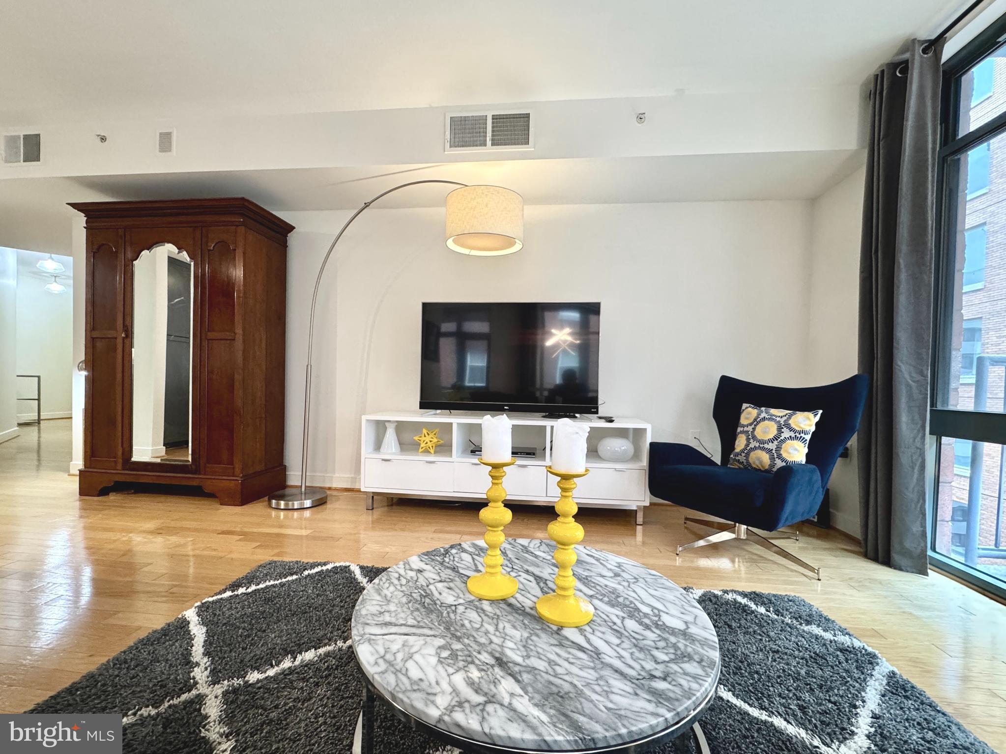 FREE USE OF A BIKE INCLUDED IN THE LEASE! Open and light 983 square foot two-bed/one-bath luxury condo with parking in perfect Shaw location. Available furnished or unfurnished + free use of a bike! *** The Unit: Floor-to-ceiling windows, corner unit, open kitchen, quartz counters & waterfall bar, stainless appliances, washer/dryer, dishwasher, wood floors, updated lighting, large primary walk-in closet with Elfa shelving, private balcony and a secure garage parking spot. *** The Building: Full-time concierge, keyless entry, well-appointed gym, expansive roof deck with gas grills, quiet one-way street, three-minute walk to Blagden Alley, 6 mins to the Convention Center Metro,12 mins to Logan Circle. *** The Deal: $3,850/month; available immediately. Pets considered on a case-by-case basis, with additional deposit and monthly fee.