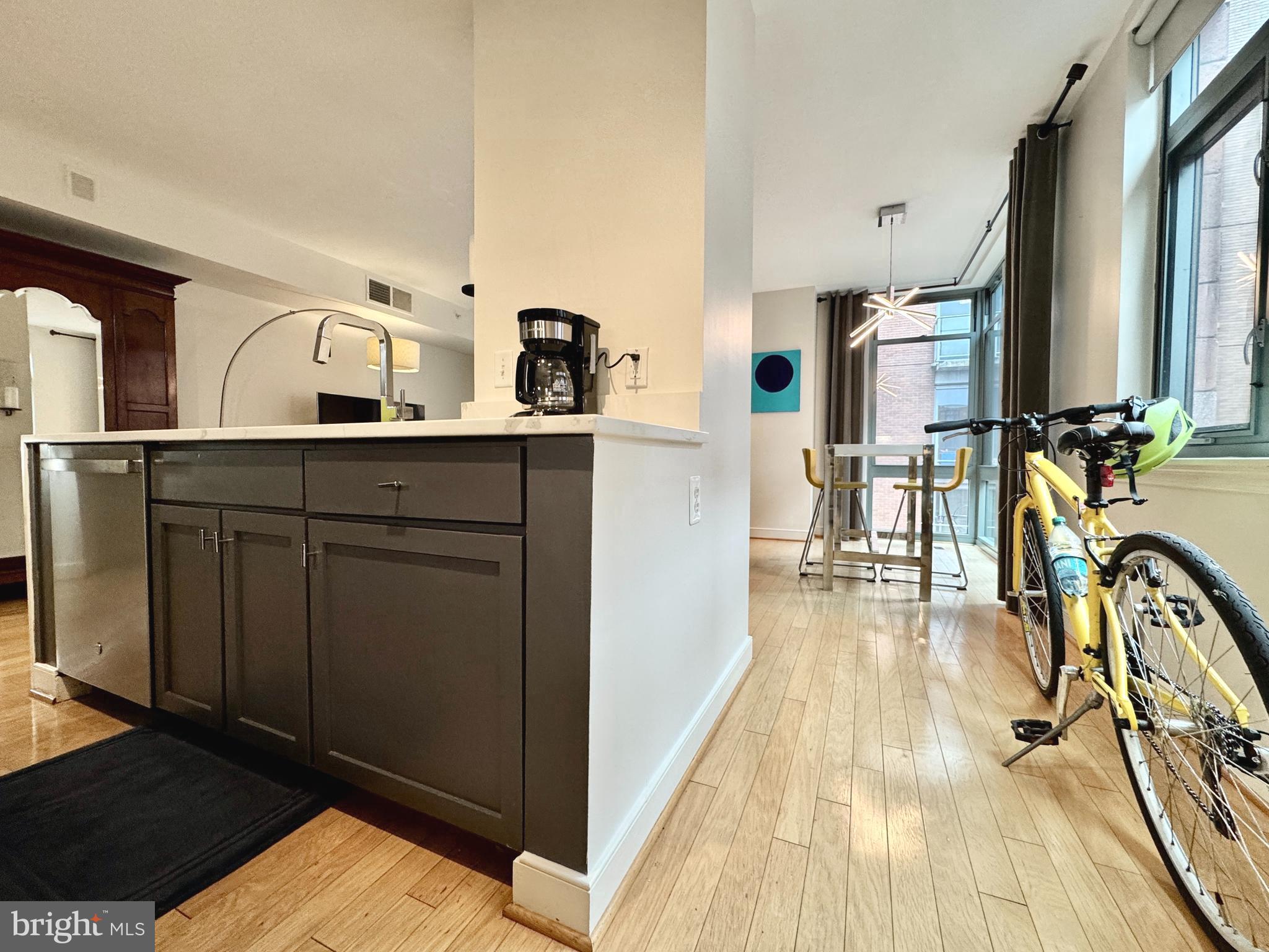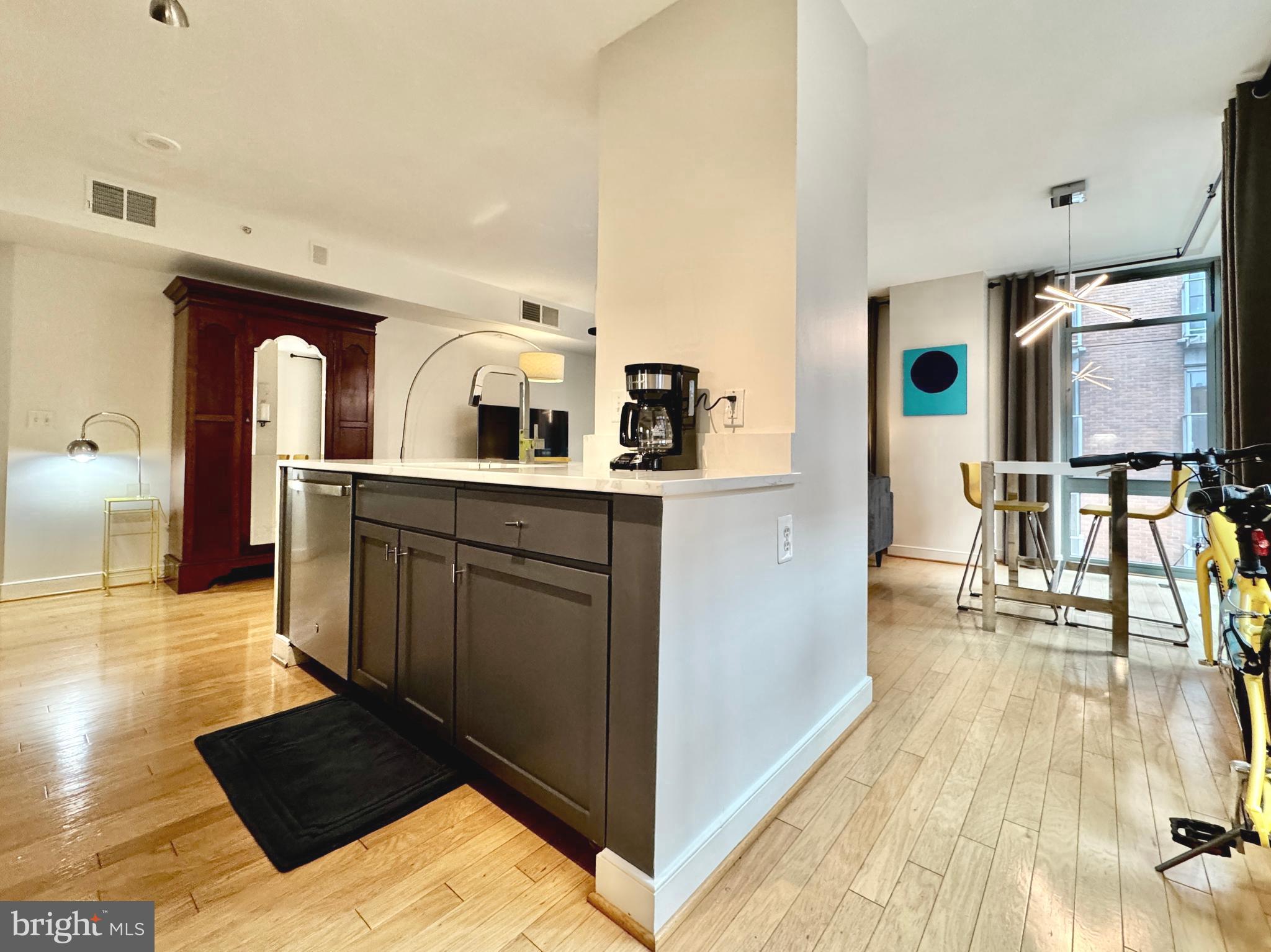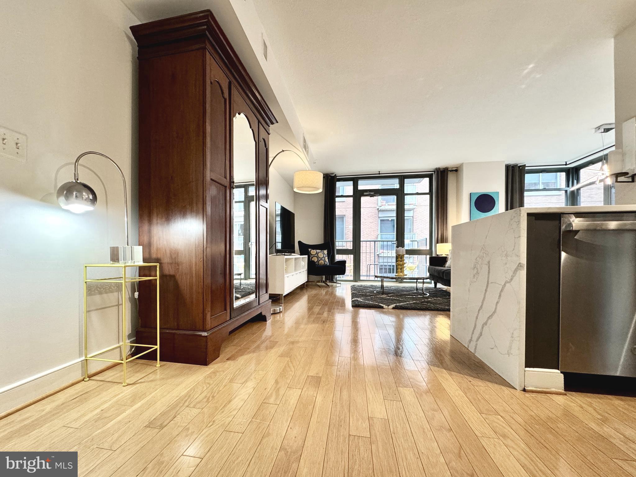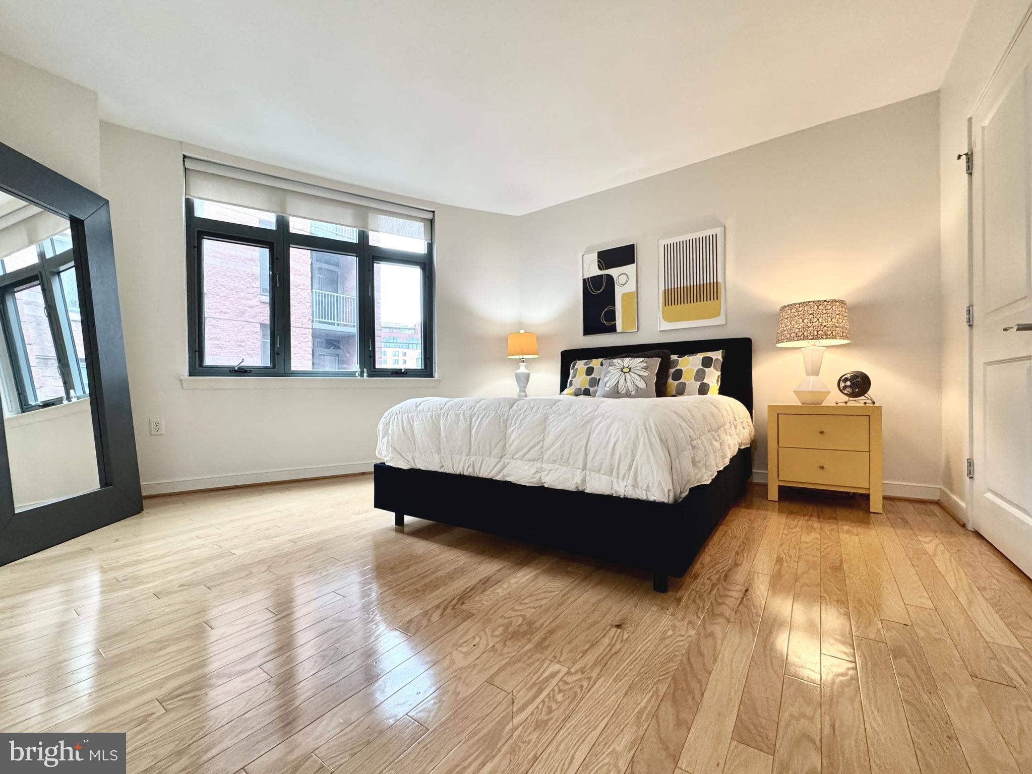 FREE USE OF A BIKE INCLUDED IN THE LEASE! Open and light 983 square foot two-bed/one-bath luxury condo with parking in perfect Shaw location. Available furnished or unfurnished + free use of a bike! *** The Unit: Floor-to-ceiling windows, corner unit, open kitchen, quartz counters & waterfall bar, stainless appliances, washer/dryer, dishwasher, wood floors, updated lighting, large primary walk-in closet with Elfa shelving, private balcony and a secure garage parking spot. *** The Building: Full-time concierge, keyless entry, well-appointed gym, expansive roof deck with gas grills, quiet one-way street, three-minute walk to Blagden Alley, 6 mins to the Convention Center Metro,12 mins to Logan Circle. *** The Deal: $3,850/month; available immediately. Pets considered on a case-by-case basis, with additional deposit and monthly fee.