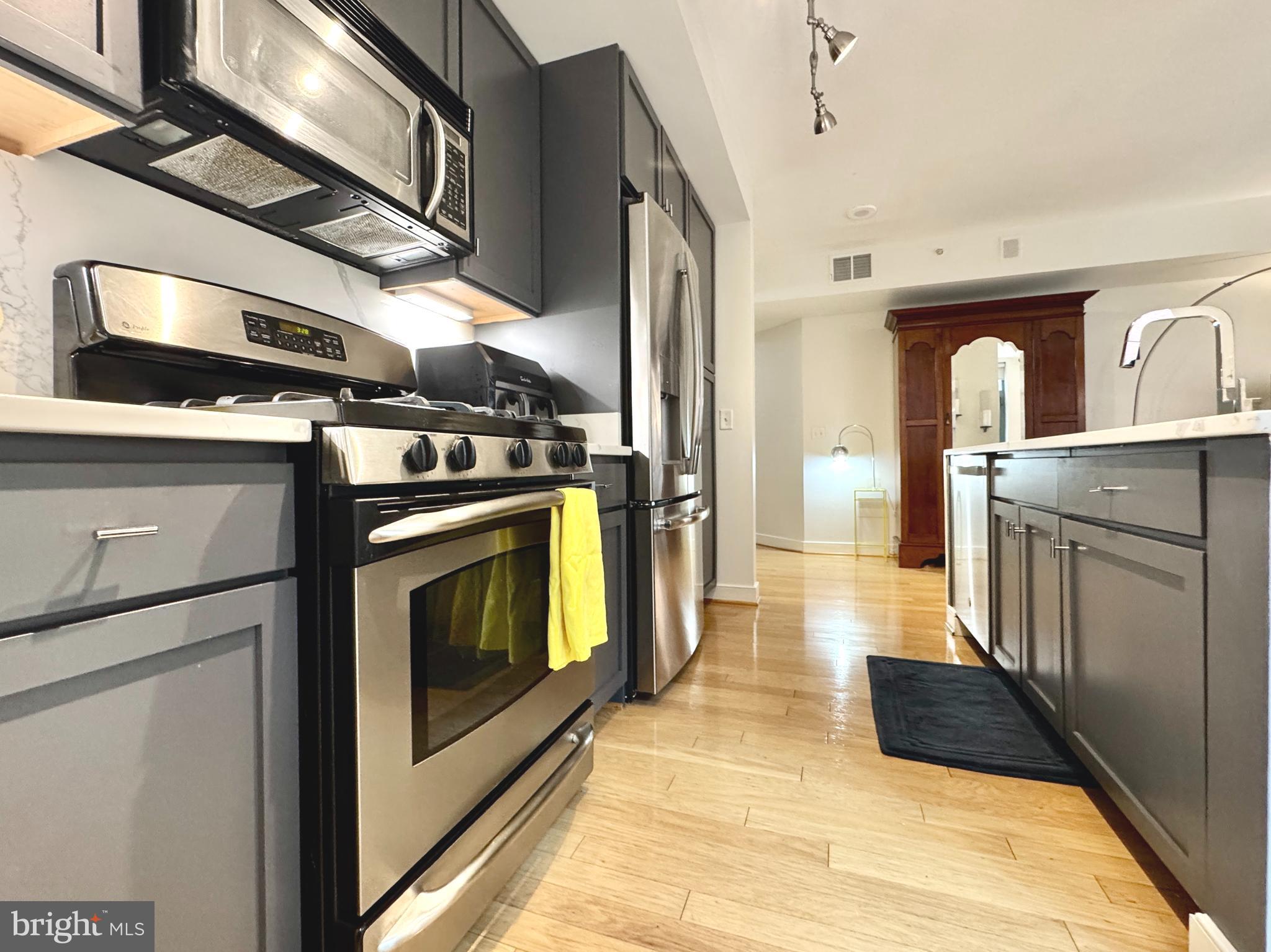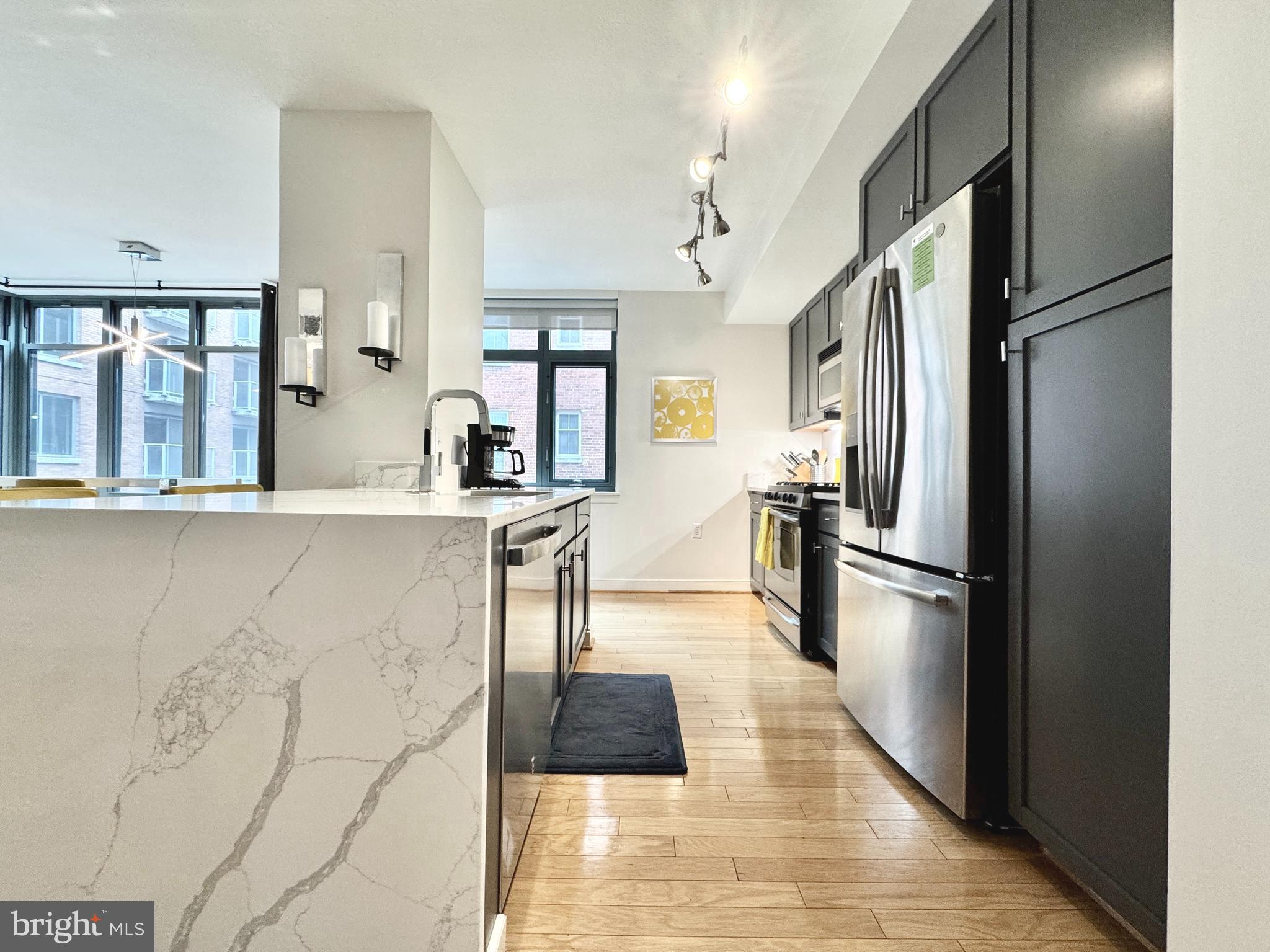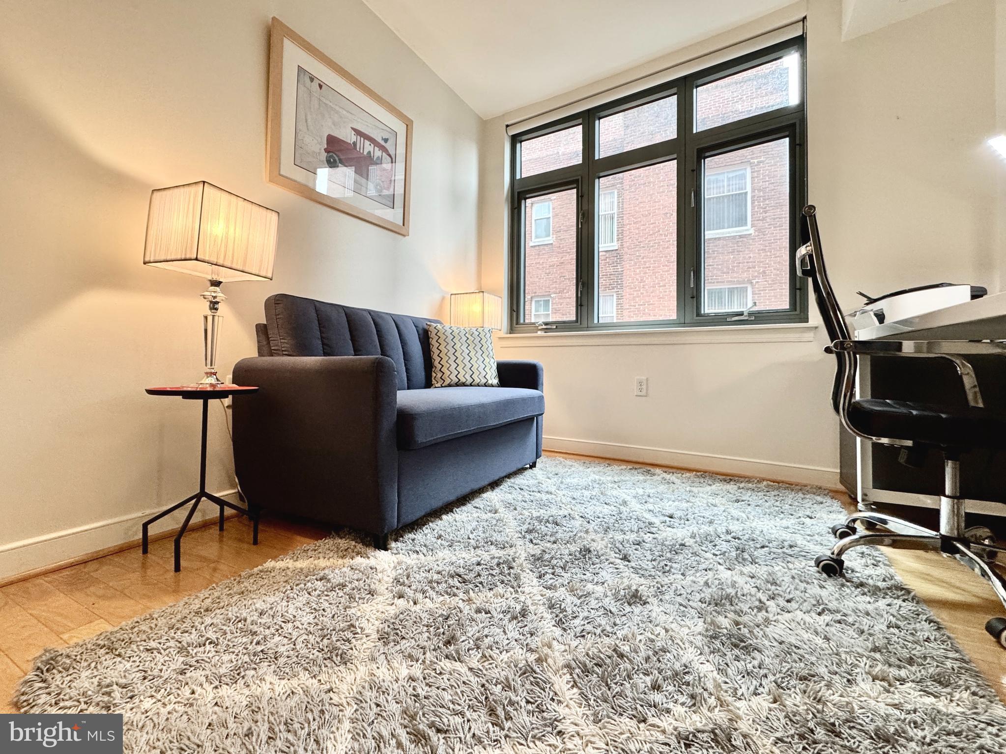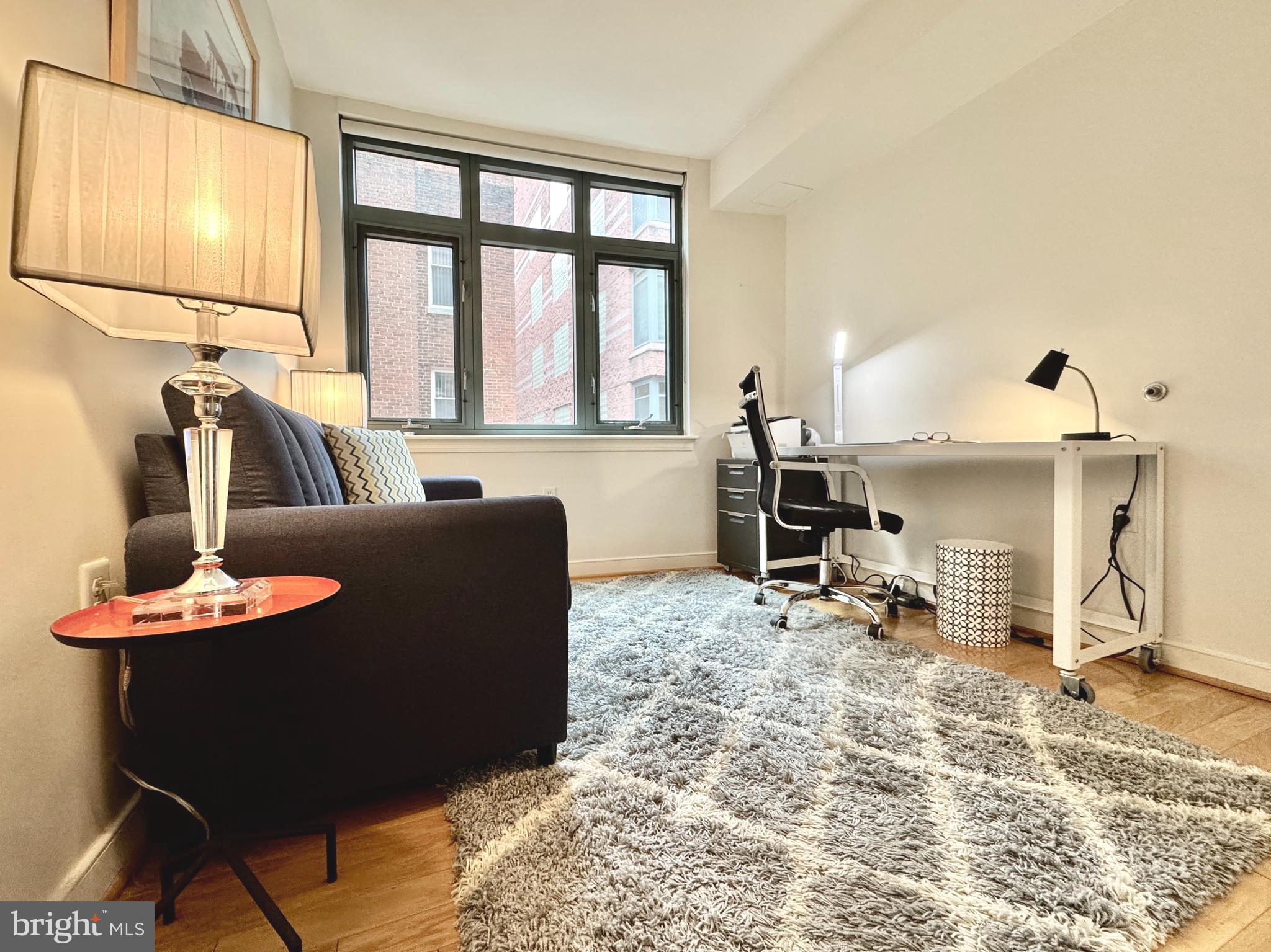 FREE USE OF A BIKE INCLUDED IN THE LEASE! Open and light 983 square foot two-bed/one-bath luxury condo with parking in perfect Shaw location. Available furnished or unfurnished + free use of a bike! *** The Unit: Floor-to-ceiling windows, corner unit, open kitchen, quartz counters & waterfall bar, stainless appliances, washer/dryer, dishwasher, wood floors, updated lighting, large primary walk-in closet with Elfa shelving, private balcony and a secure garage parking spot. *** The Building: Full-time concierge, keyless entry, well-appointed gym, expansive roof deck with gas grills, quiet one-way street, three-minute walk to Blagden Alley, 6 mins to the Convention Center Metro,12 mins to Logan Circle. *** The Deal: $3,850/month; available immediately. Pets considered on a case-by-case basis, with additional deposit and monthly fee.