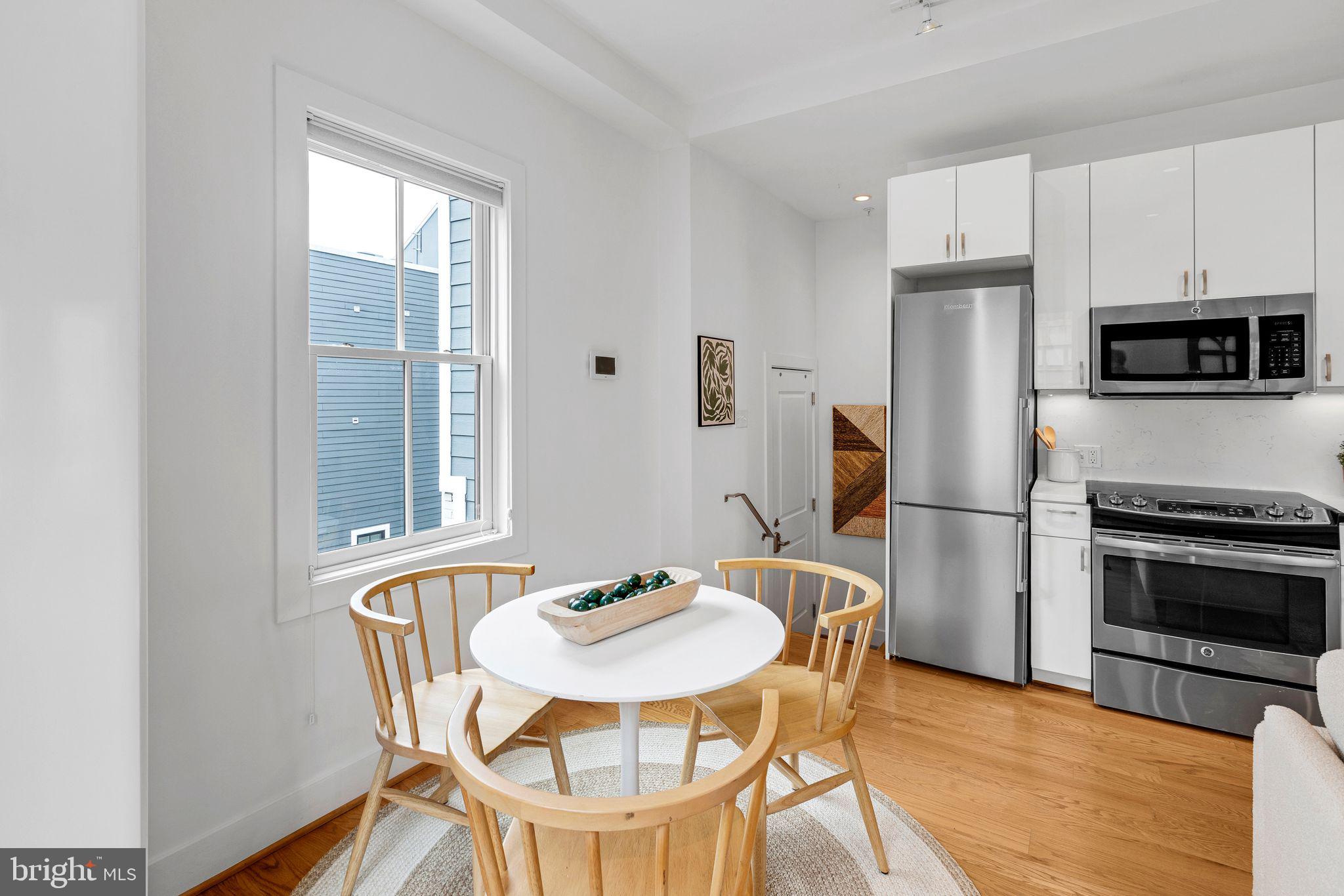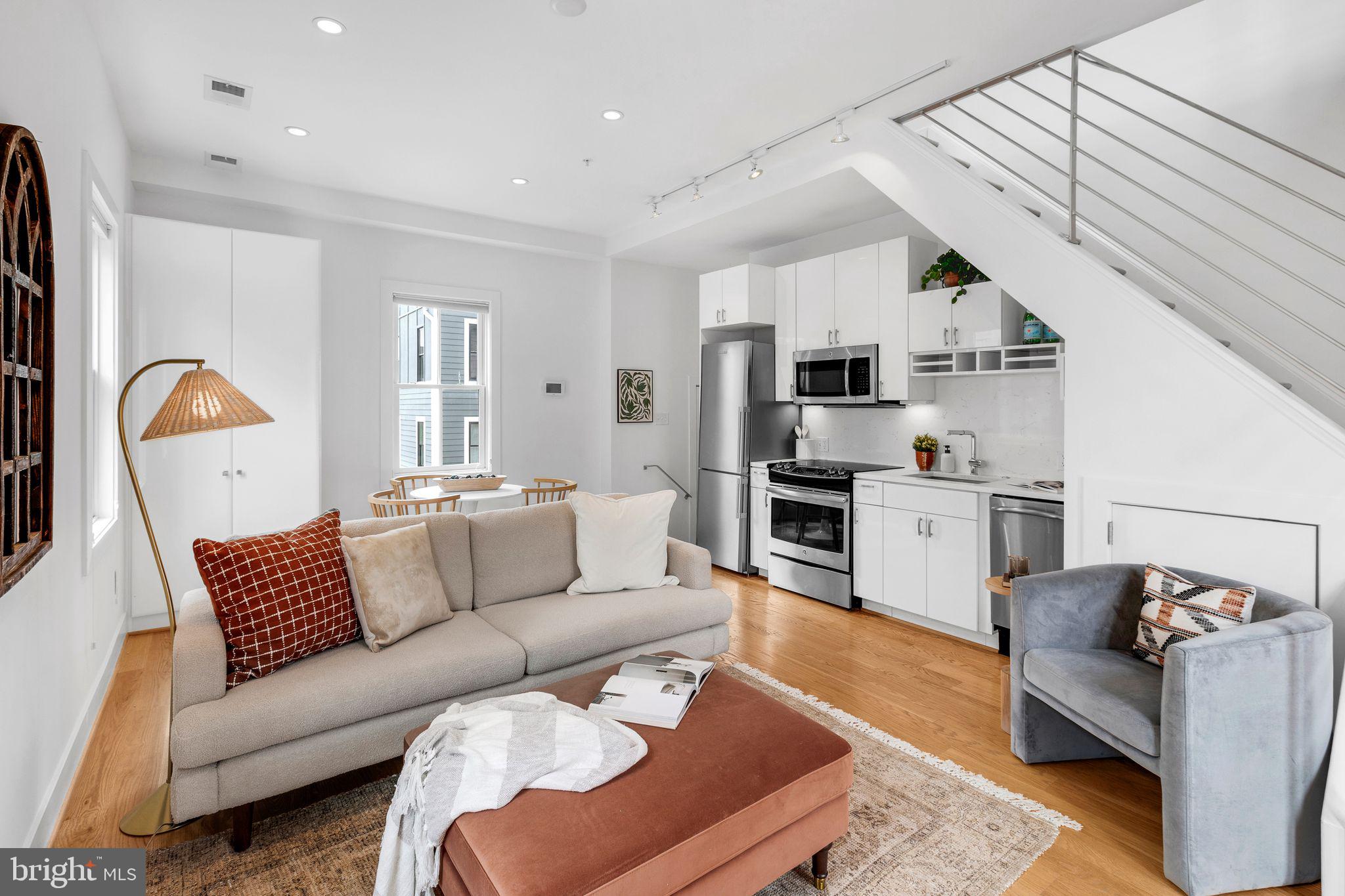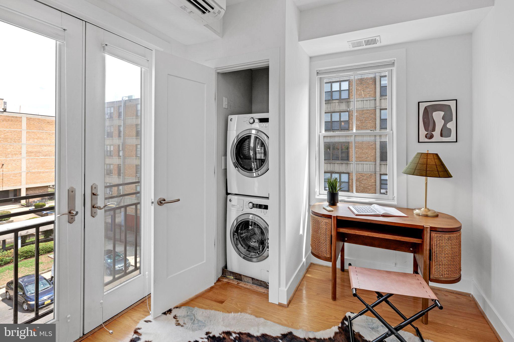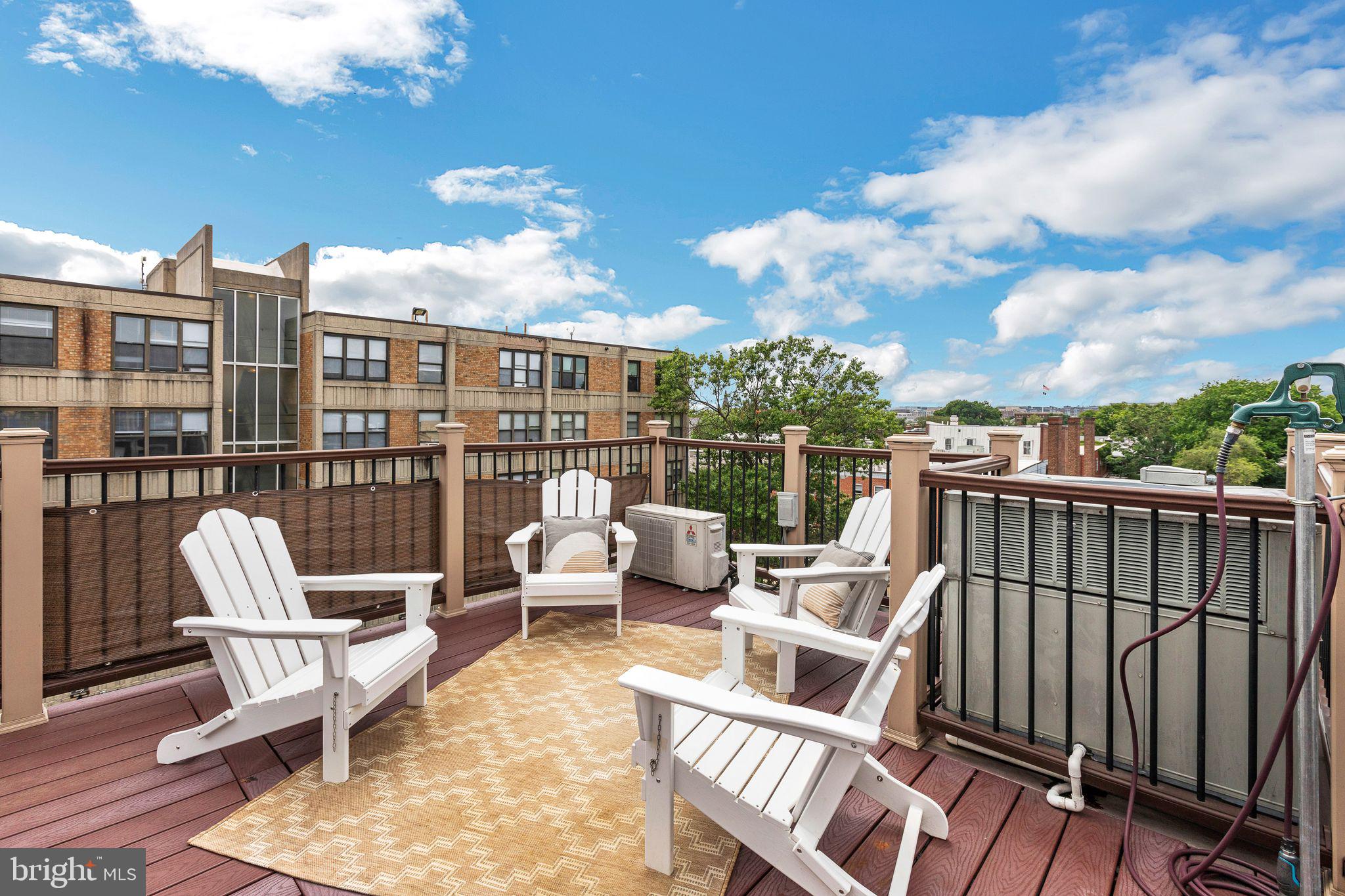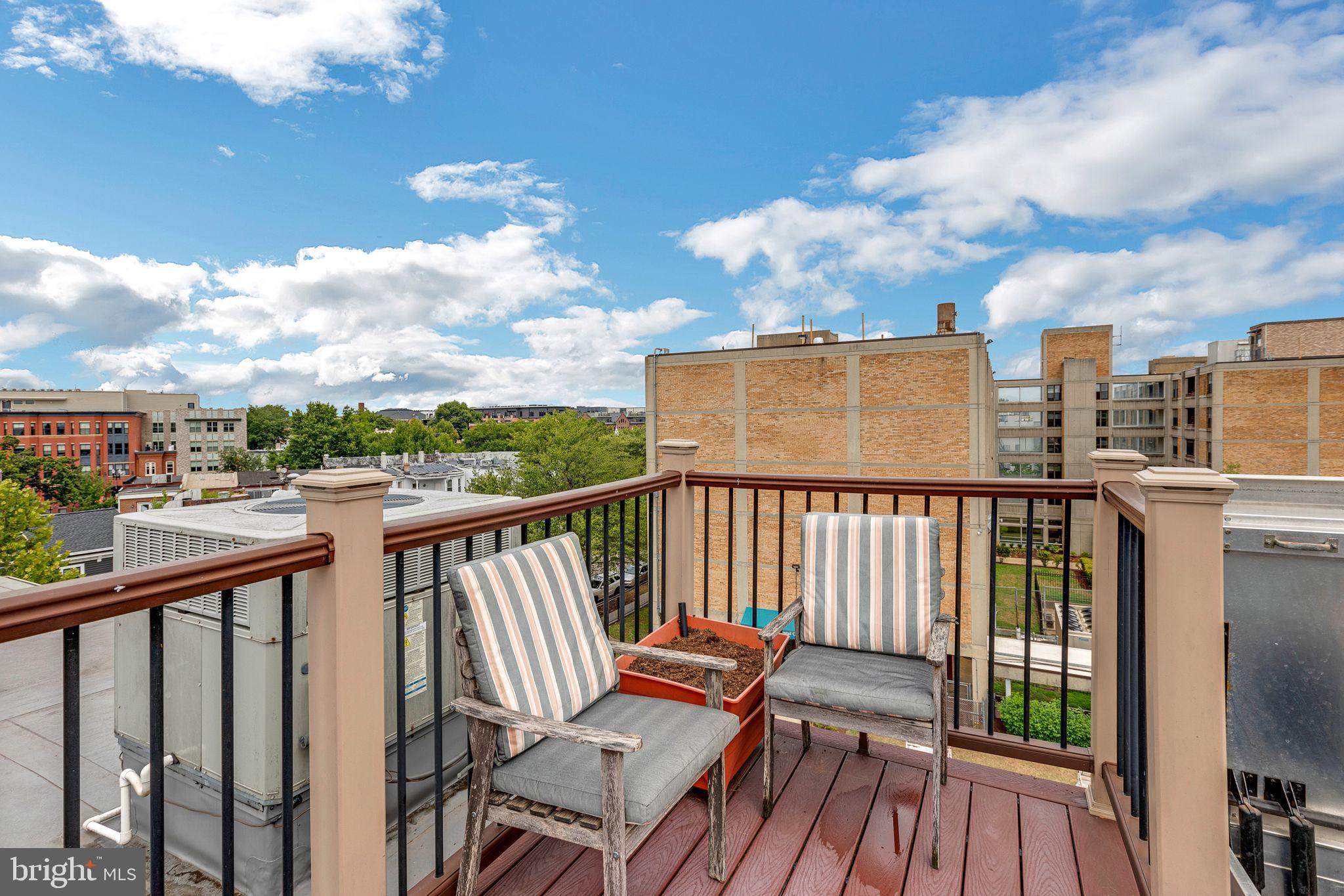 Welcome to Cambridge Row, a boutique 25-unit condominium (together with 1209 G Street SE) in DC's Capitol Hill neighborhood. Unit 13 is one of only a couple of 2-level residences with a private rooftop terrace featuring coveted monument views, including of the Capitol Dome. This top-floor, feature-filled 1-bedroom, 1-bathroom residence across 672 square feet includes a separate den/office space for working from home or hosting out-of-town guests. Interior features include solid hardwood floors, two Juliet balconies, stacked washer/dryer upstairs, high-gloss European-style lacquered cabinets, quartz countertops, stainless appliances, a marble bath with frameless shower door, custom built-in storage closets, a secondary mini-split AC upstairs for zoned climate control and window shades for privacy. Two extra storage bins included. Cambridge Row skillfully combines the meticulous renovation of the former Salvation Army building at 1211 G Street SE with an attractive newer building at 1209 G Street, all within walking distance of the Potomac Ave and Eastern Market Metro Stations as well as the shops and dining options of Barracks Row, Eastern Market and the Navy Yard and many other attractions on Capitol Hill.