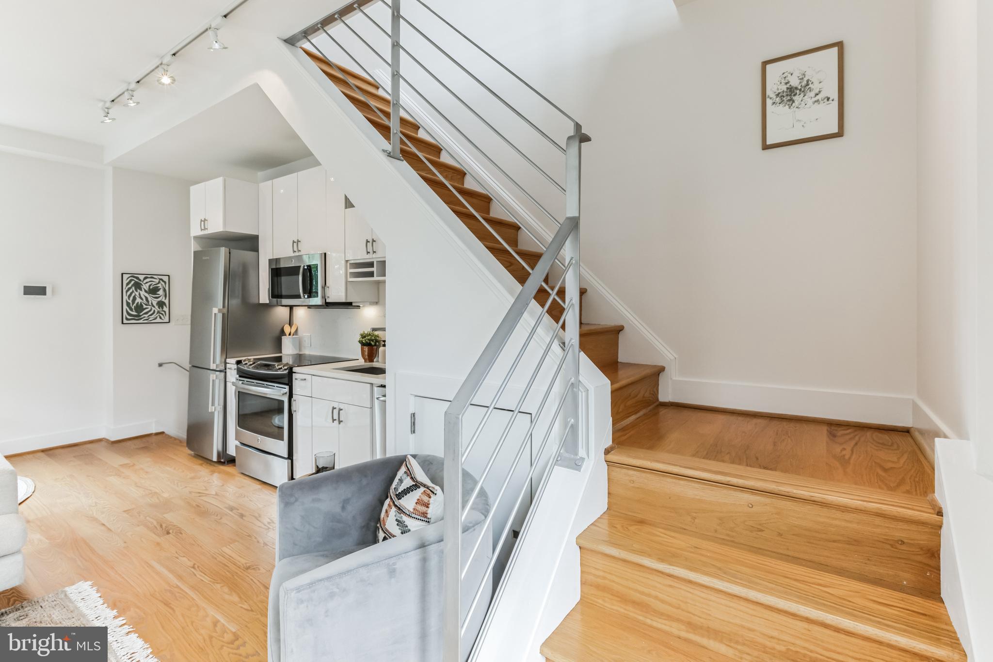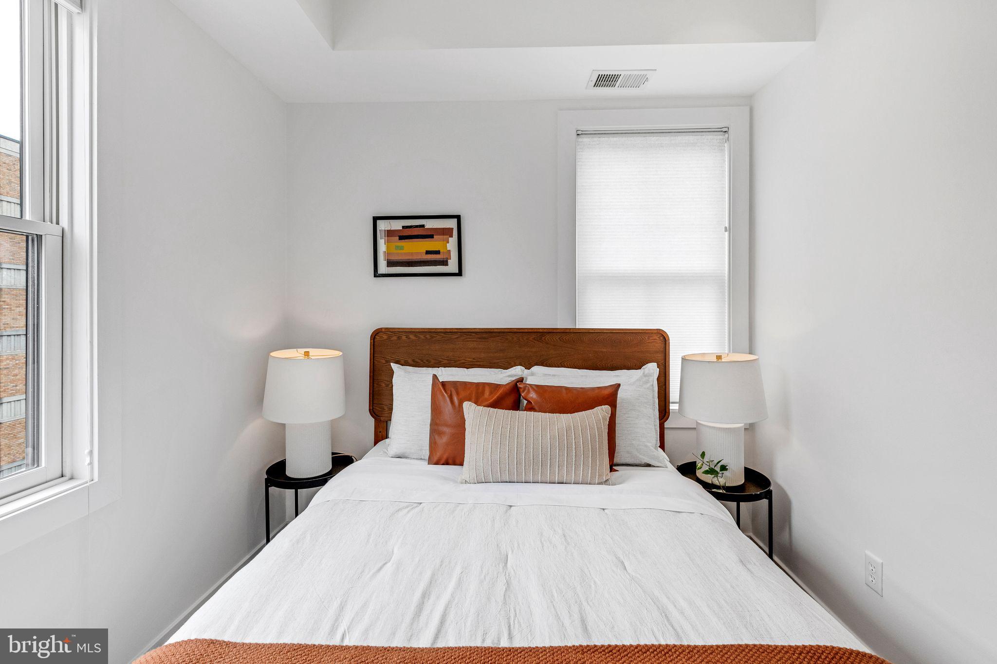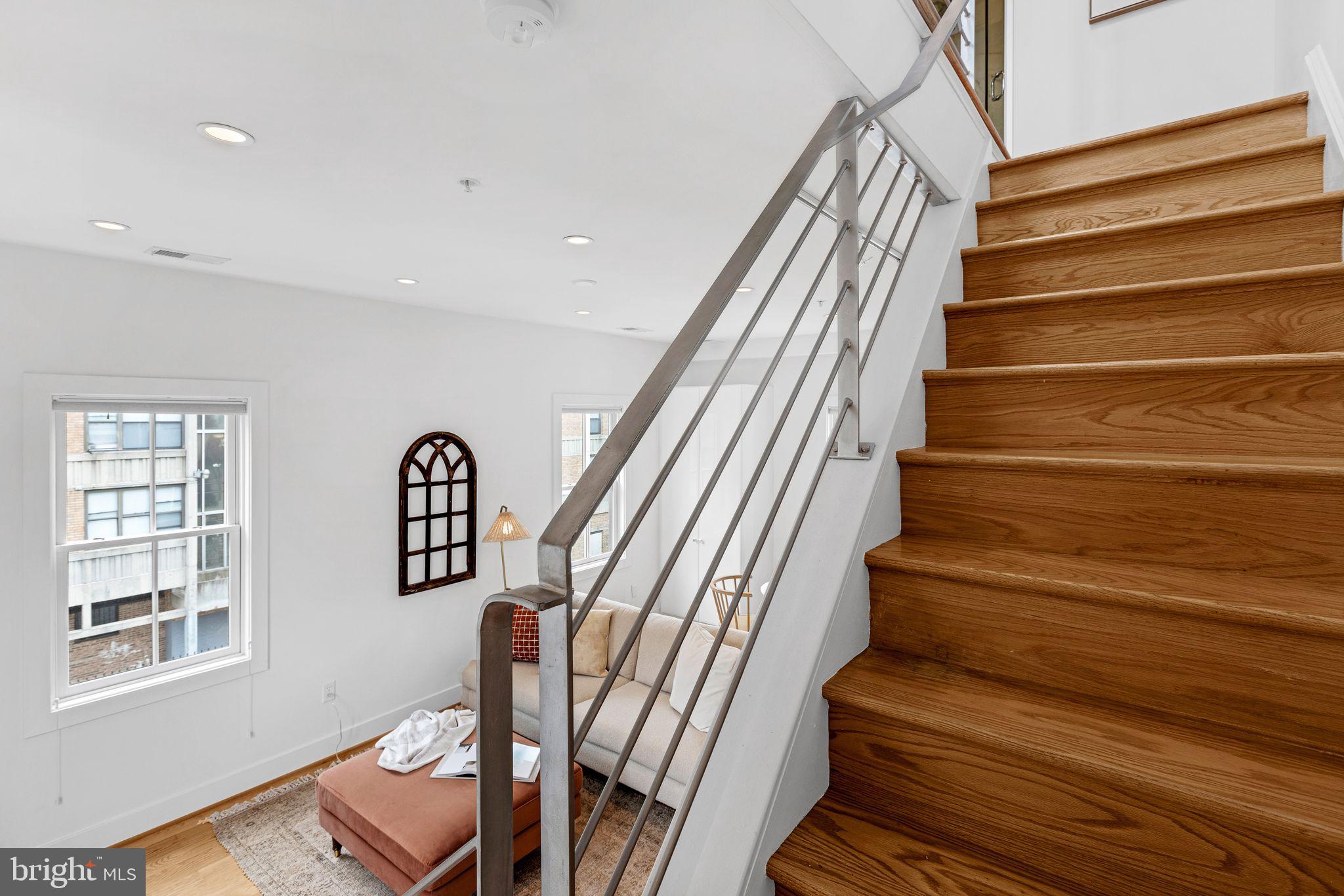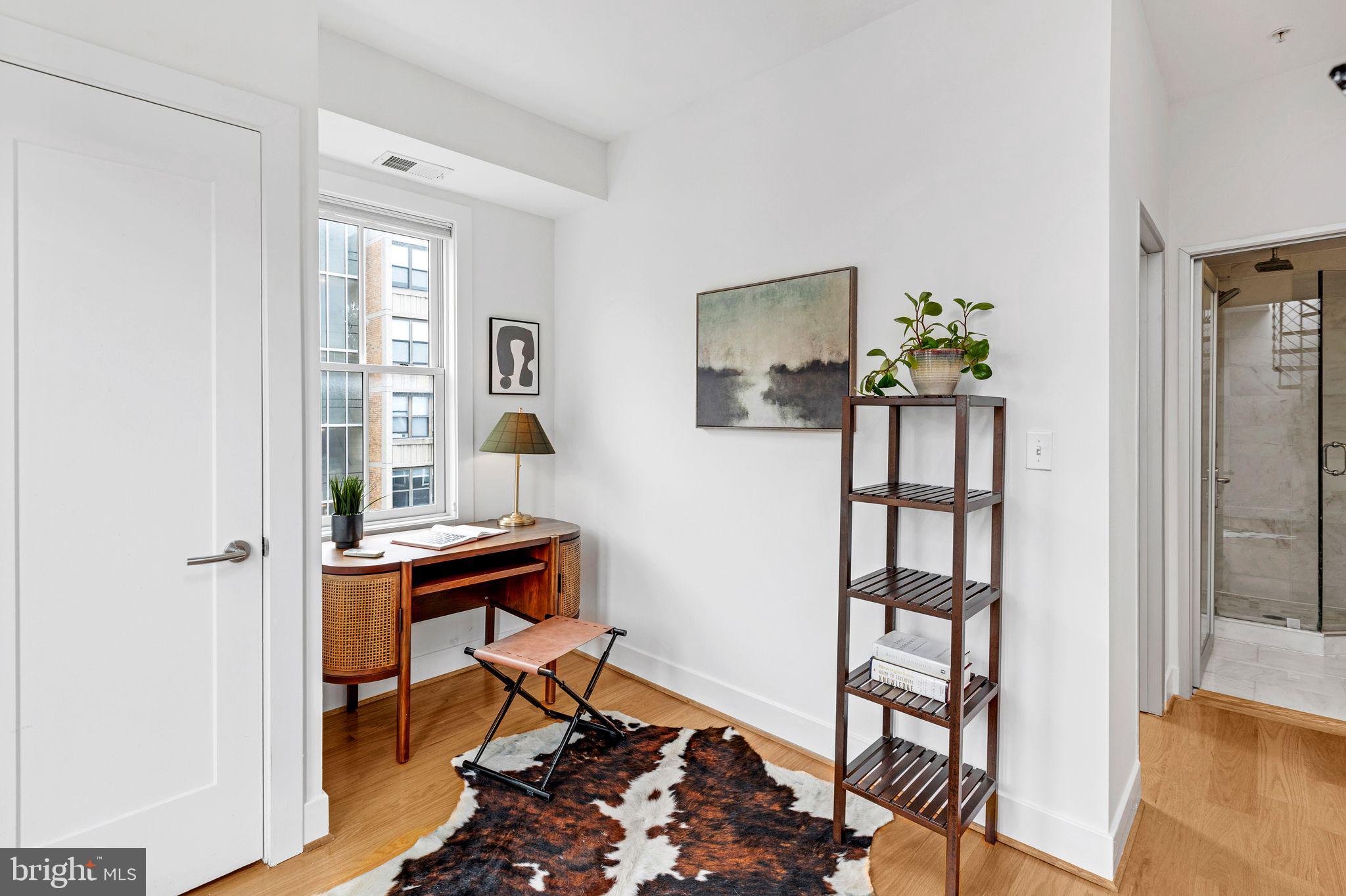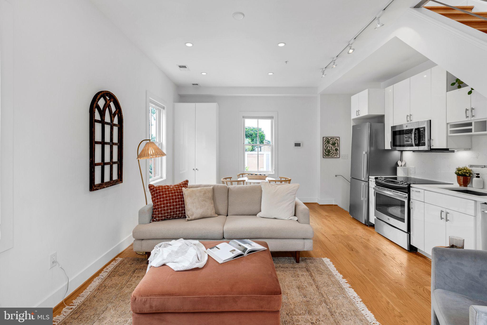 Welcome to Cambridge Row, a boutique 25-unit condominium (together with 1209 G Street SE) in DC's Capitol Hill neighborhood. Unit 13 is one of only a couple of 2-level residences with a private rooftop terrace featuring coveted monument views, including of the Capitol Dome. This top-floor, feature-filled 1-bedroom, 1-bathroom residence across 672 square feet includes a separate den/office space for working from home or hosting out-of-town guests. Interior features include solid hardwood floors, two Juliet balconies, stacked washer/dryer upstairs, high-gloss European-style lacquered cabinets, quartz countertops, stainless appliances, a marble bath with frameless shower door, custom built-in storage closets, a secondary mini-split AC upstairs for zoned climate control and window shades for privacy. Two extra storage bins included. Cambridge Row skillfully combines the meticulous renovation of the former Salvation Army building at 1211 G Street SE with an attractive newer building at 1209 G Street, all within walking distance of the Potomac Ave and Eastern Market Metro Stations as well as the shops and dining options of Barracks Row, Eastern Market and the Navy Yard and many other attractions on Capitol Hill.