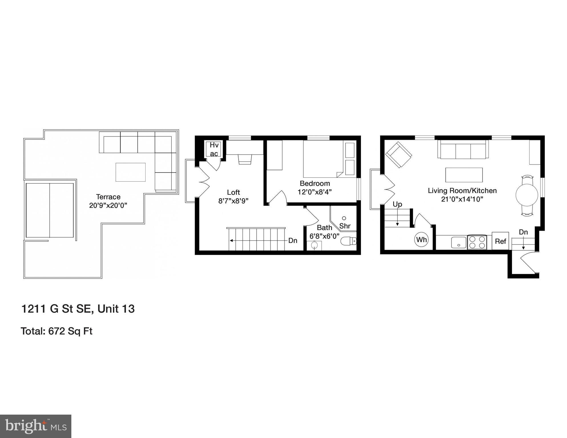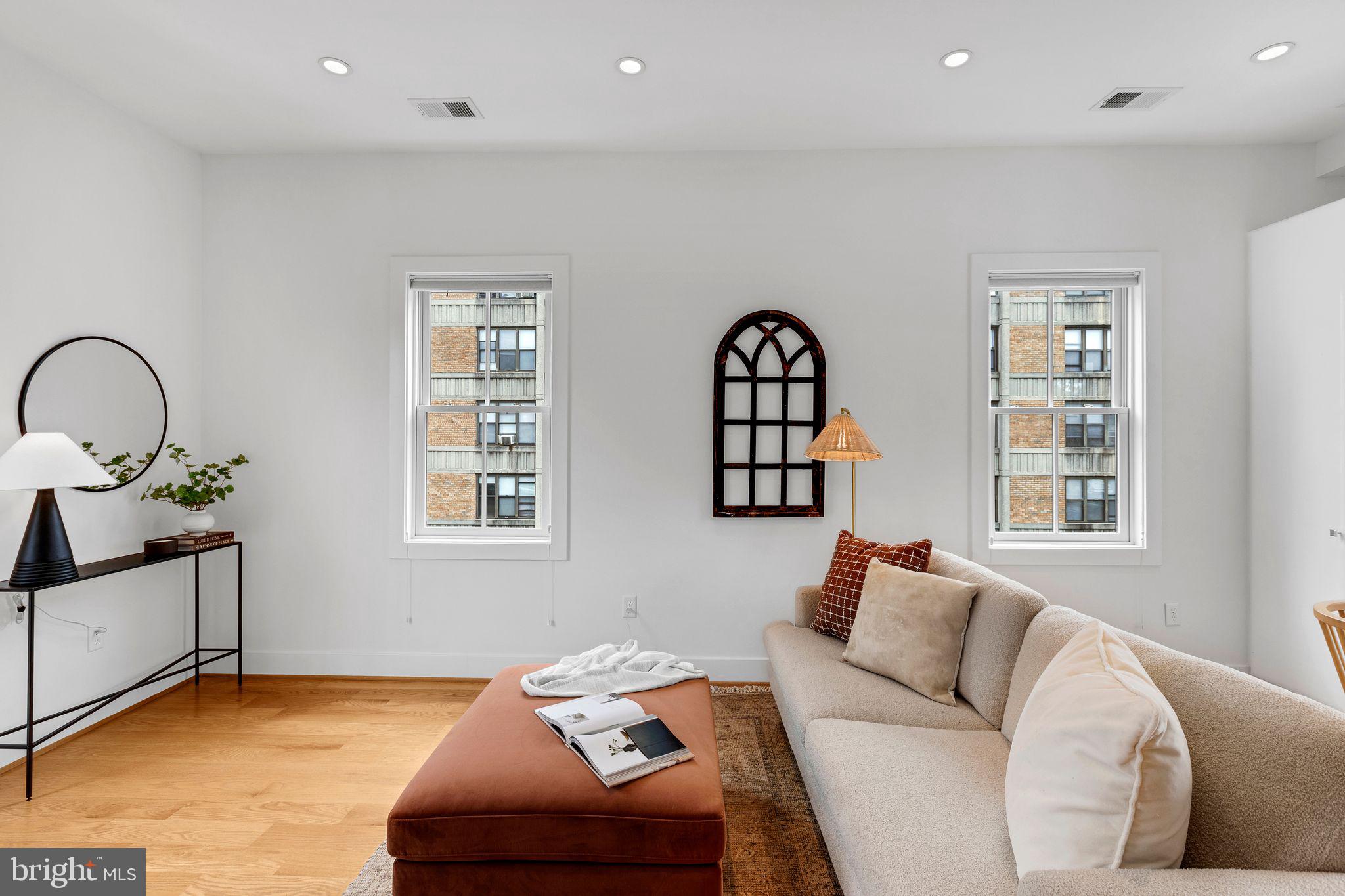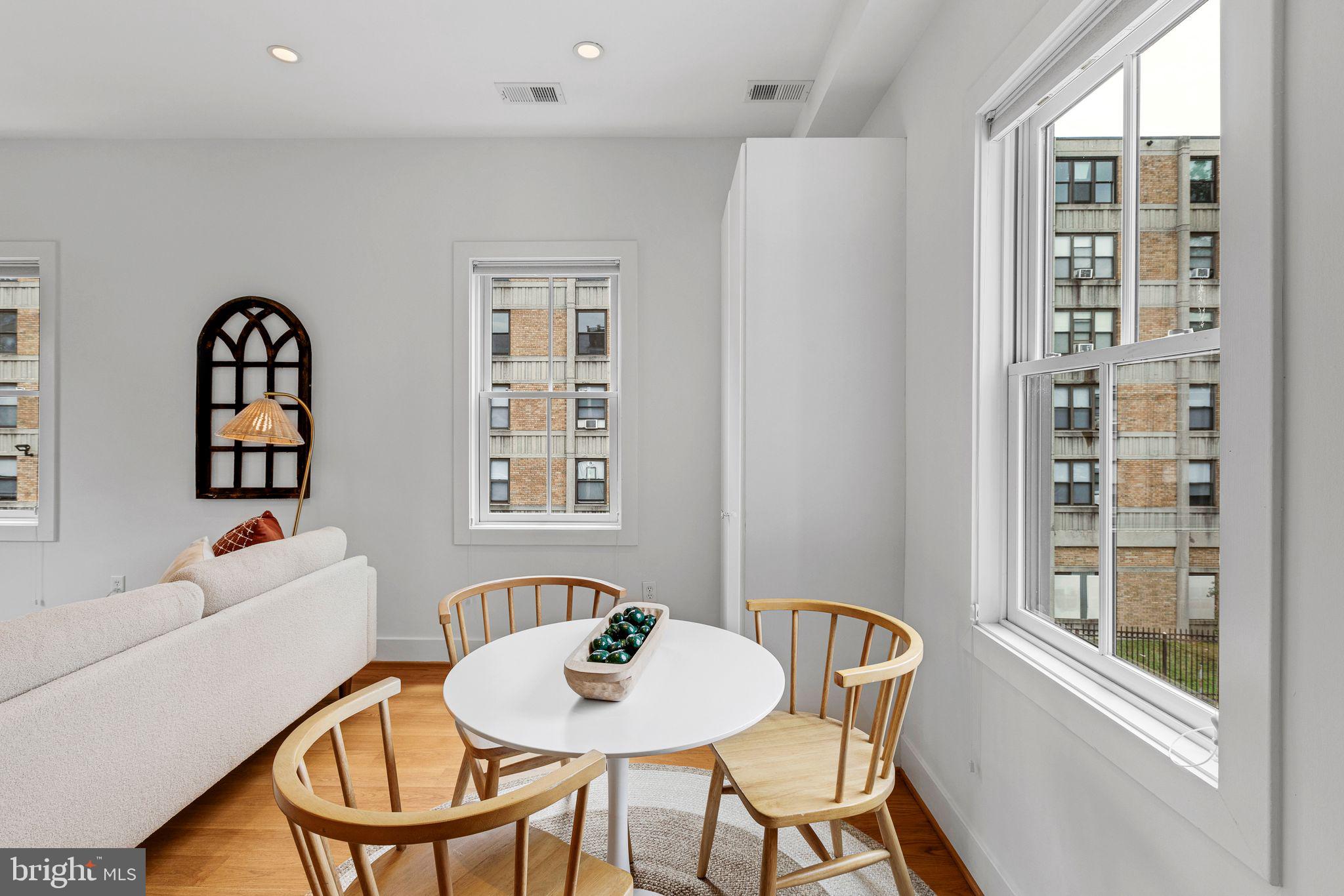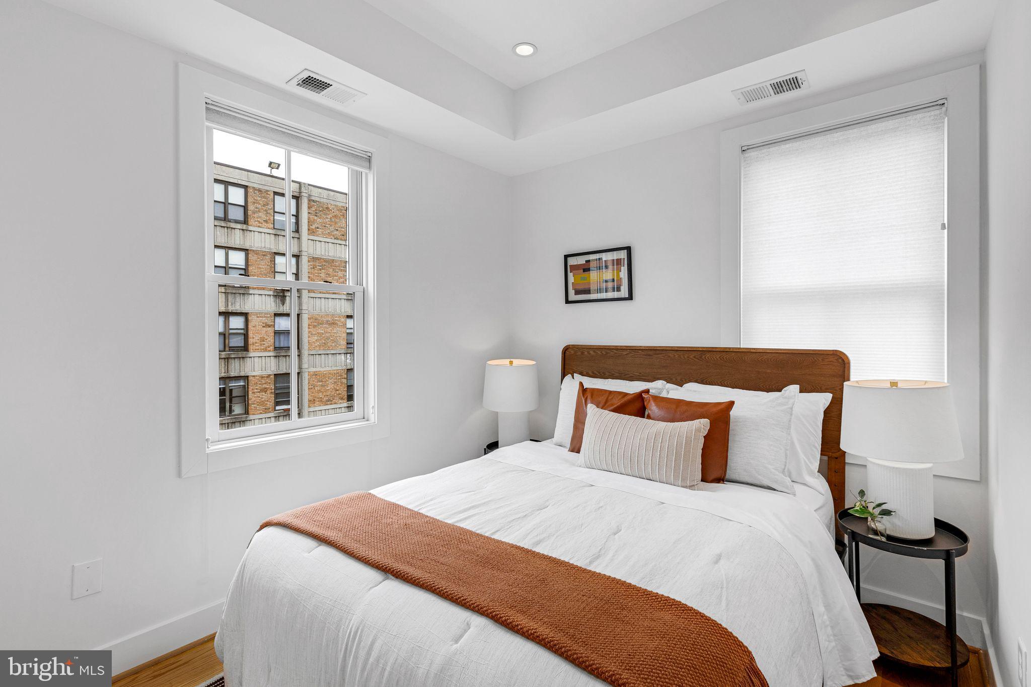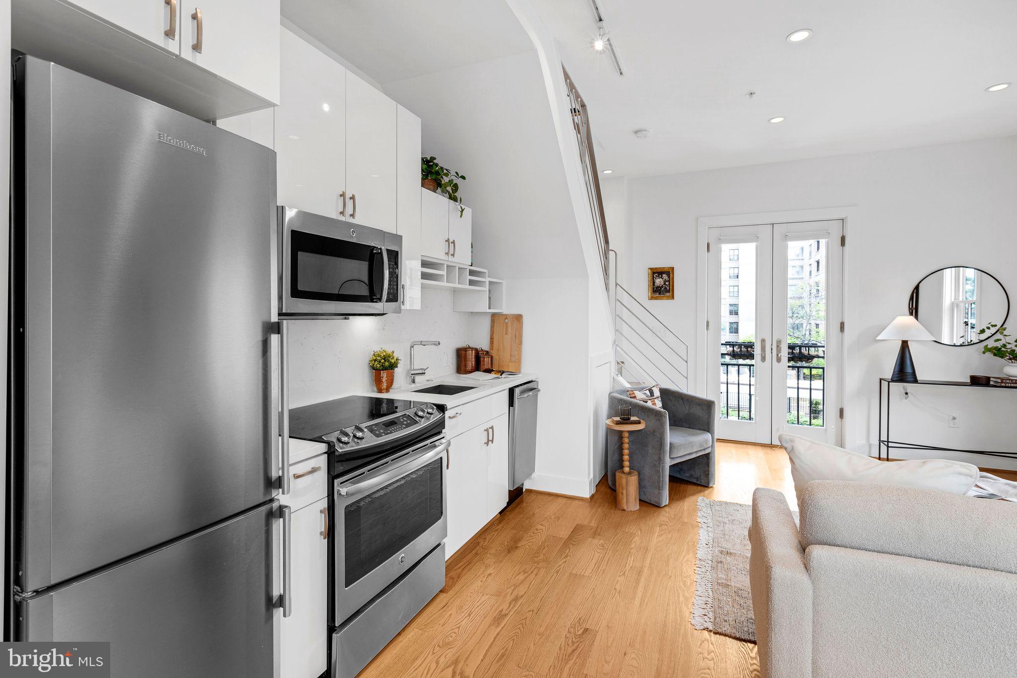 Welcome to Cambridge Row, a boutique 25-unit condominium (together with 1209 G Street SE) in DC's Capitol Hill neighborhood. Unit 13 is one of only a couple of 2-level residences with a private rooftop terrace featuring coveted monument views, including of the Capitol Dome. This top-floor, feature-filled 1-bedroom, 1-bathroom residence across 672 square feet includes a separate den/office space for working from home or hosting out-of-town guests. Interior features include solid hardwood floors, two Juliet balconies, stacked washer/dryer upstairs, high-gloss European-style lacquered cabinets, quartz countertops, stainless appliances, a marble bath with frameless shower door, custom built-in storage closets, a secondary mini-split AC upstairs for zoned climate control and window shades for privacy. Two extra storage bins included. Cambridge Row skillfully combines the meticulous renovation of the former Salvation Army building at 1211 G Street SE with an attractive newer building at 1209 G Street, all within walking distance of the Potomac Ave and Eastern Market Metro Stations as well as the shops and dining options of Barracks Row, Eastern Market and the Navy Yard and many other attractions on Capitol Hill.