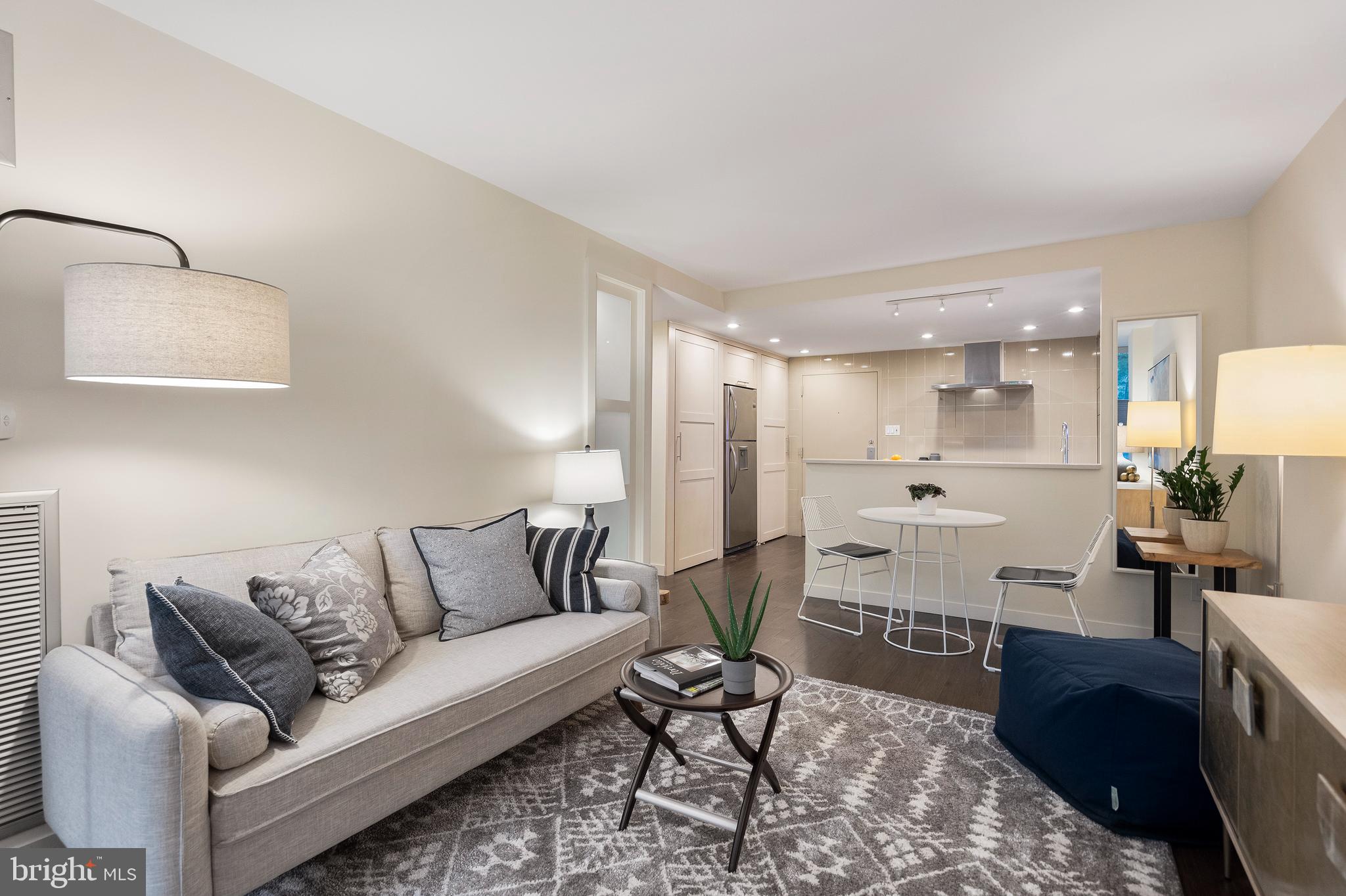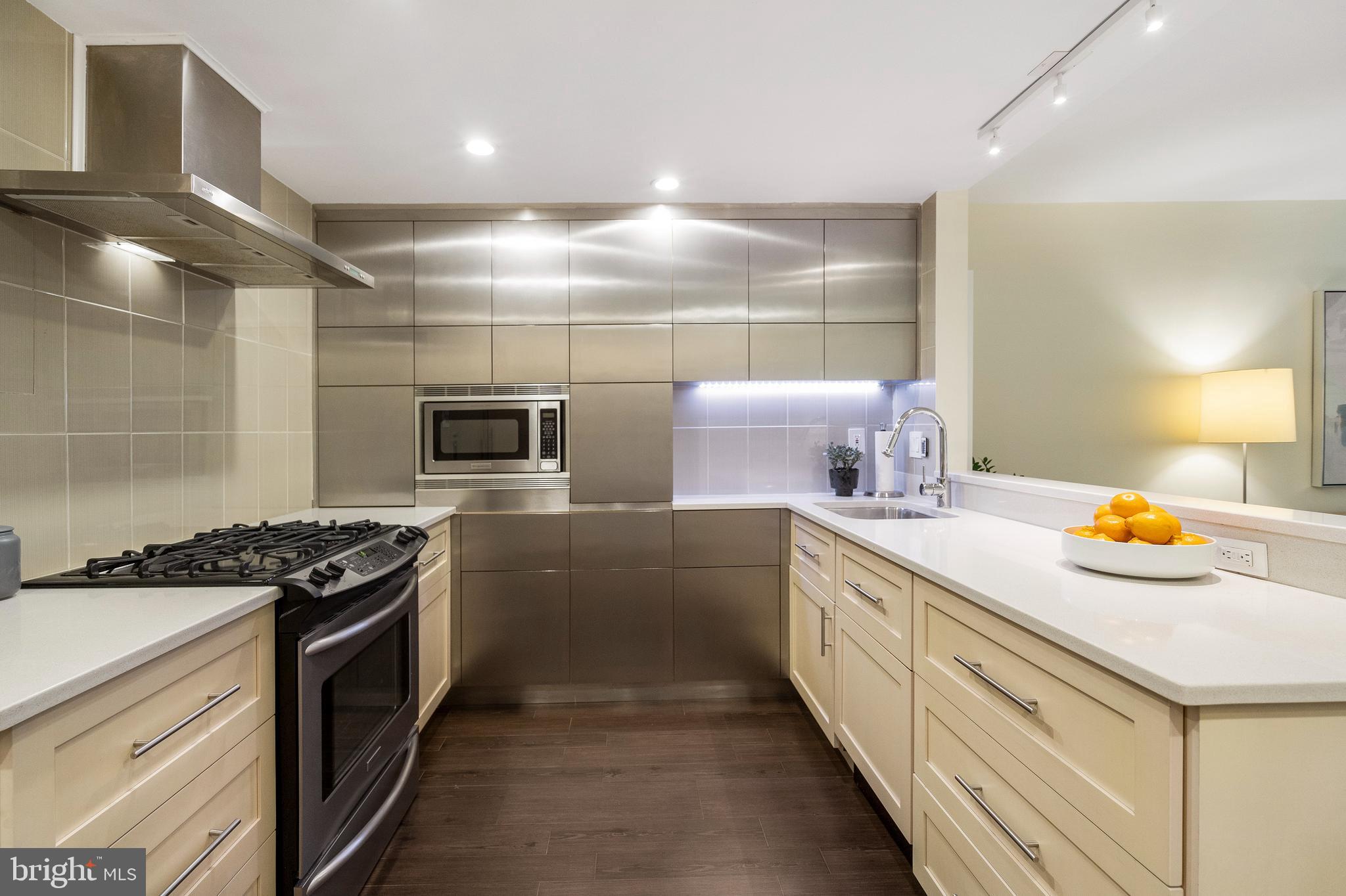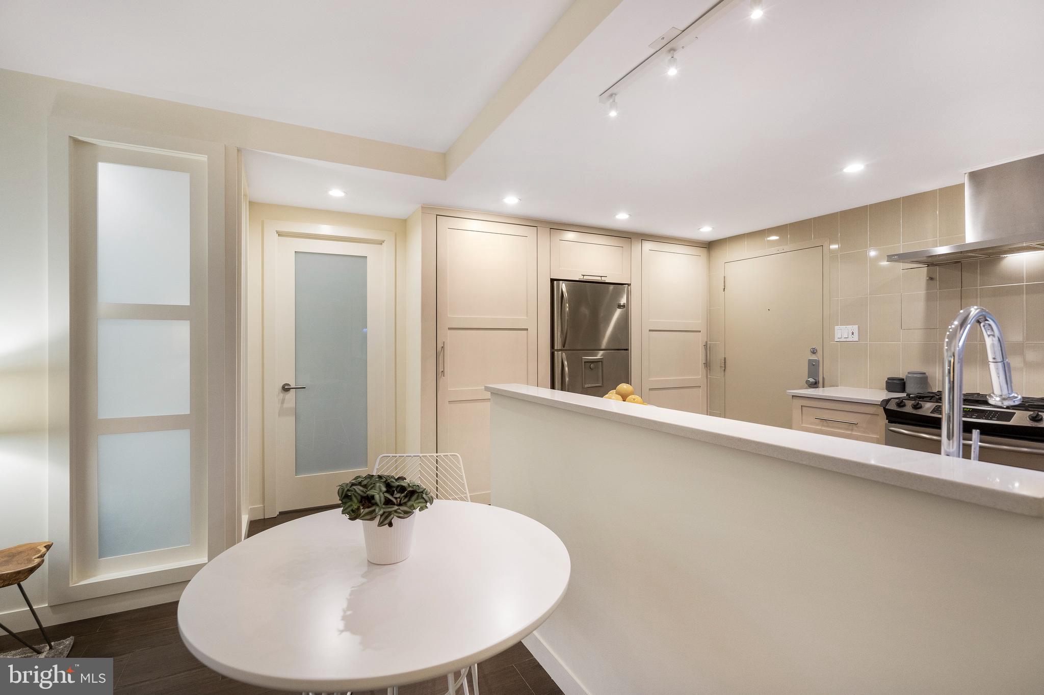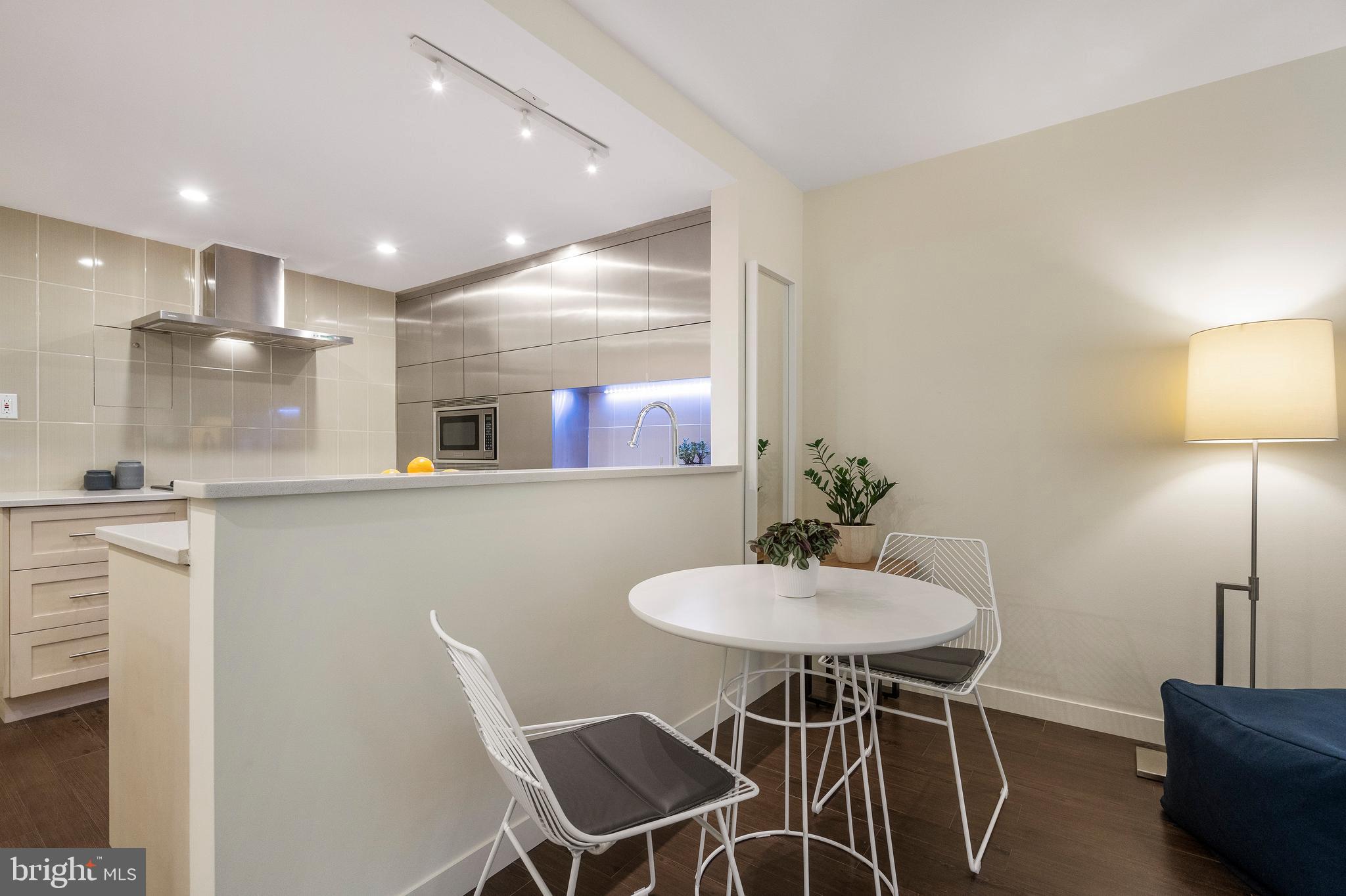 ***Available March 1st.*** Why compromise when you can have it all?! Garage parking? Check. Rooftop pool? Check. In-unit washer/dryer? 24-hour concierge? All utilities included? Check, check and check! This residence has been meticulously updated with the most sophisticated finishes and space-maximizing design. The kitchen features custom cabinets, including a sleek stainless steel cabinetry wall, built-in microwave, a tiled feature wall and a pantry wall with tons of flexible storage. Recessed lights, pocket and frosted glass doors and frosted glass corner accents allow light to shine through the unit, creating a sense that this home punches well above its class in terms of size. You'll love the sleek Porcelanosa wood-look porcelain plank floors that stretch throughout the unit (and are heated!). And you'll feel like you're at the spa everyday in this gorgeous bath, with floor-to-ceiling Porcelanosa tiles, ample storage and large shower with dual shower heads and built-in bench. Relax at the rooftop pool, have some friends over and grill out. You won't want to miss this one! One cat permitted with additional $25 monthly fee. One block to Red Line Metro Station.