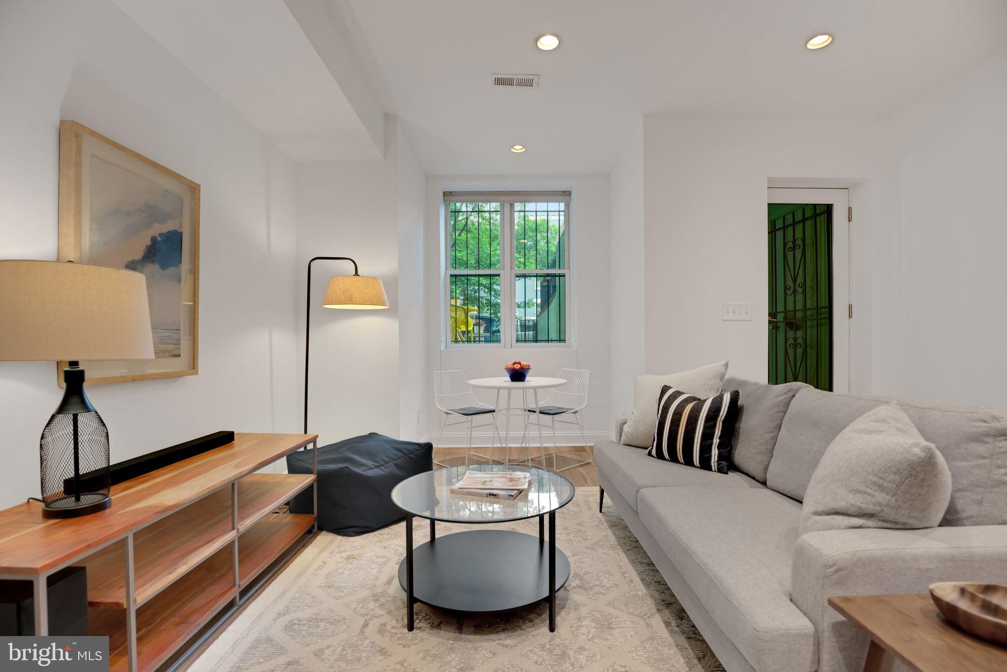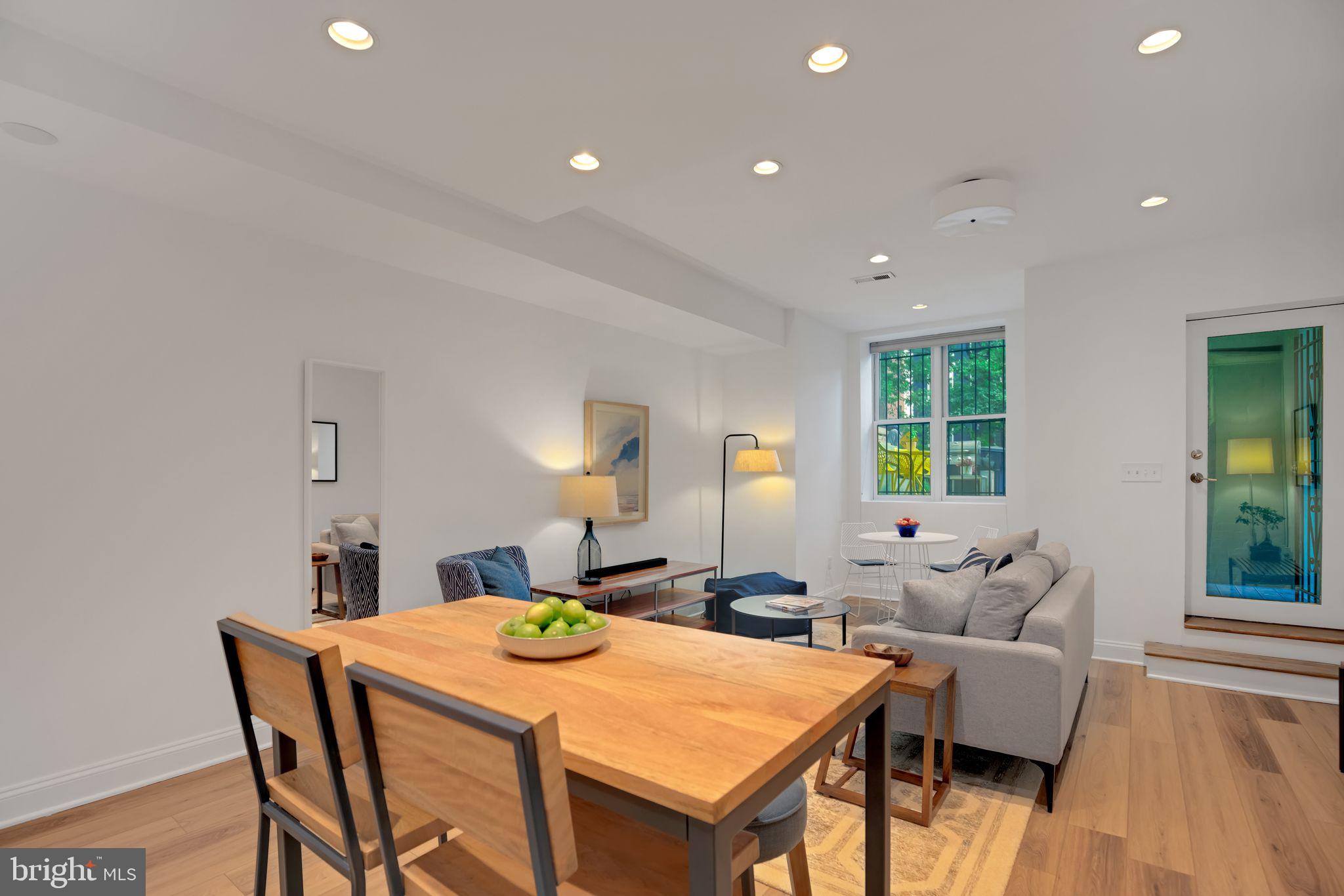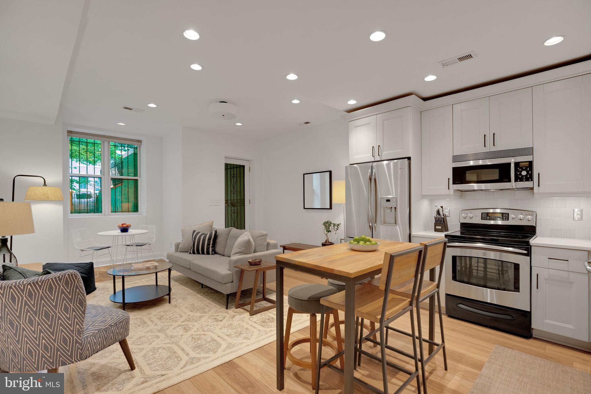 For rent; available beginning June 1st. (Also available for sale for $475,000.) This wide and bright garden-level unit in Columbia Heights offers two bedrooms and two full baths across the entire street-level floor of a converted 4-unit row house. The front of the recently-renovated residence offers an open kitchen/dining/living room with large front window overlooking the unit's private patio with sunny southern exposure. The updated kitchen boasts GE stainless steel appliances and quartz counters, painted cabinets with new hardware and a beautiful new tile backsplash. Gorgeous wide-plank, oak-inspired LVP floors run throughout. The primary bedroom with renovated ensuite bath is large enough for a king-sized bed, while the second bedroom (with separate entrance) easily accommodates a full bed or might be used instead as an office or den. Complete with stacked washer/dryer and a second renovated full bath. High ceilings, recessed lighting throughout and just painted. Pet-friendly with a low condo fee, a Walk Score of 95, a Bike Score of 97 and just steps to the Columbia Heights metro. Don't miss it! Water included. Pets acceptable on a case-by-case basis with additional $200 deposit. Limit 2 pets. Additional monthly pet fee of $25/cat or $50/dog. Background and credit check required. District law requires that a housing provider state that the housing provider will not refuse to rent a rental unit to a person because the person will provide the rental payment, in whole or in part, through a voucher for rental housing assistance provided by the District or federal government.