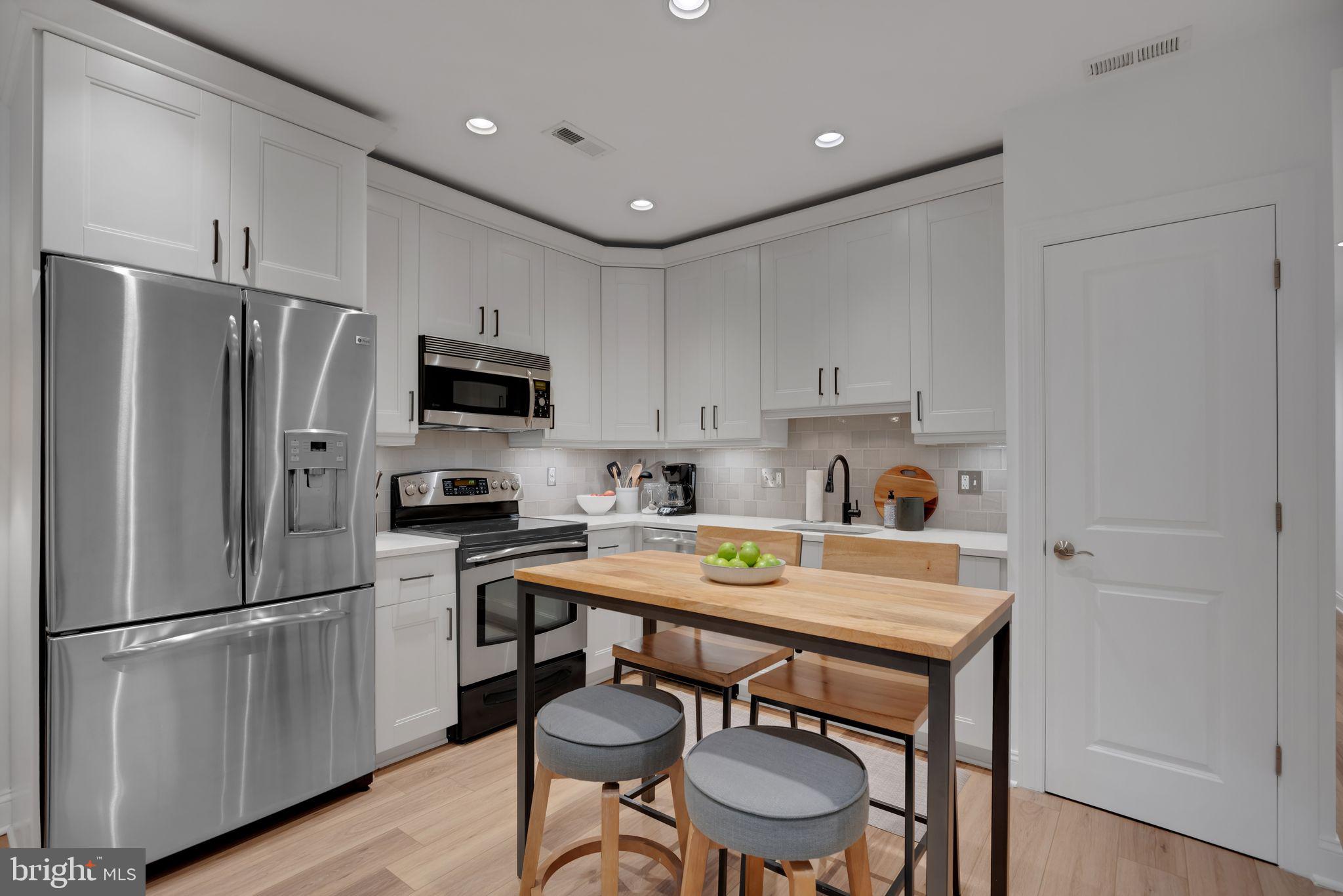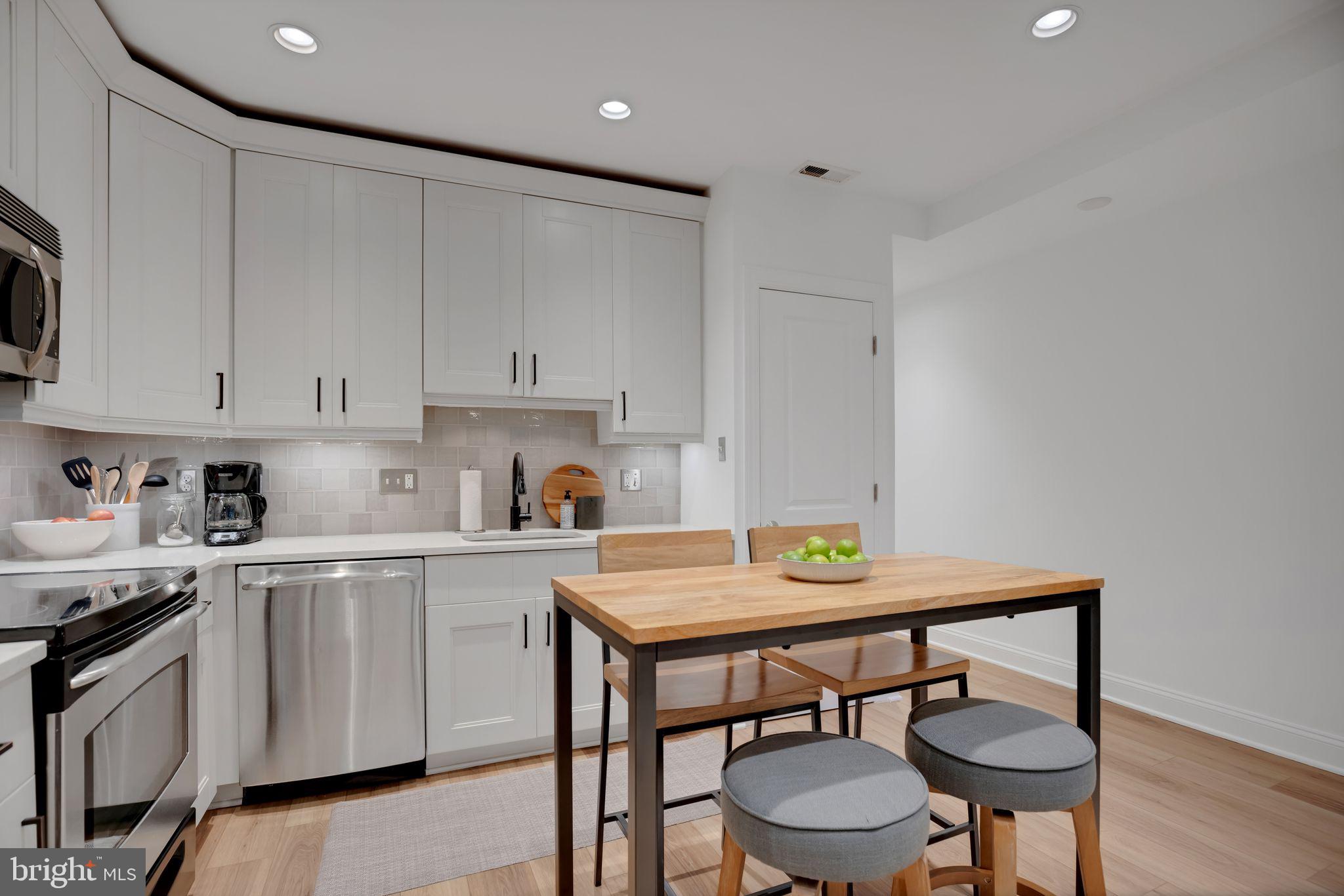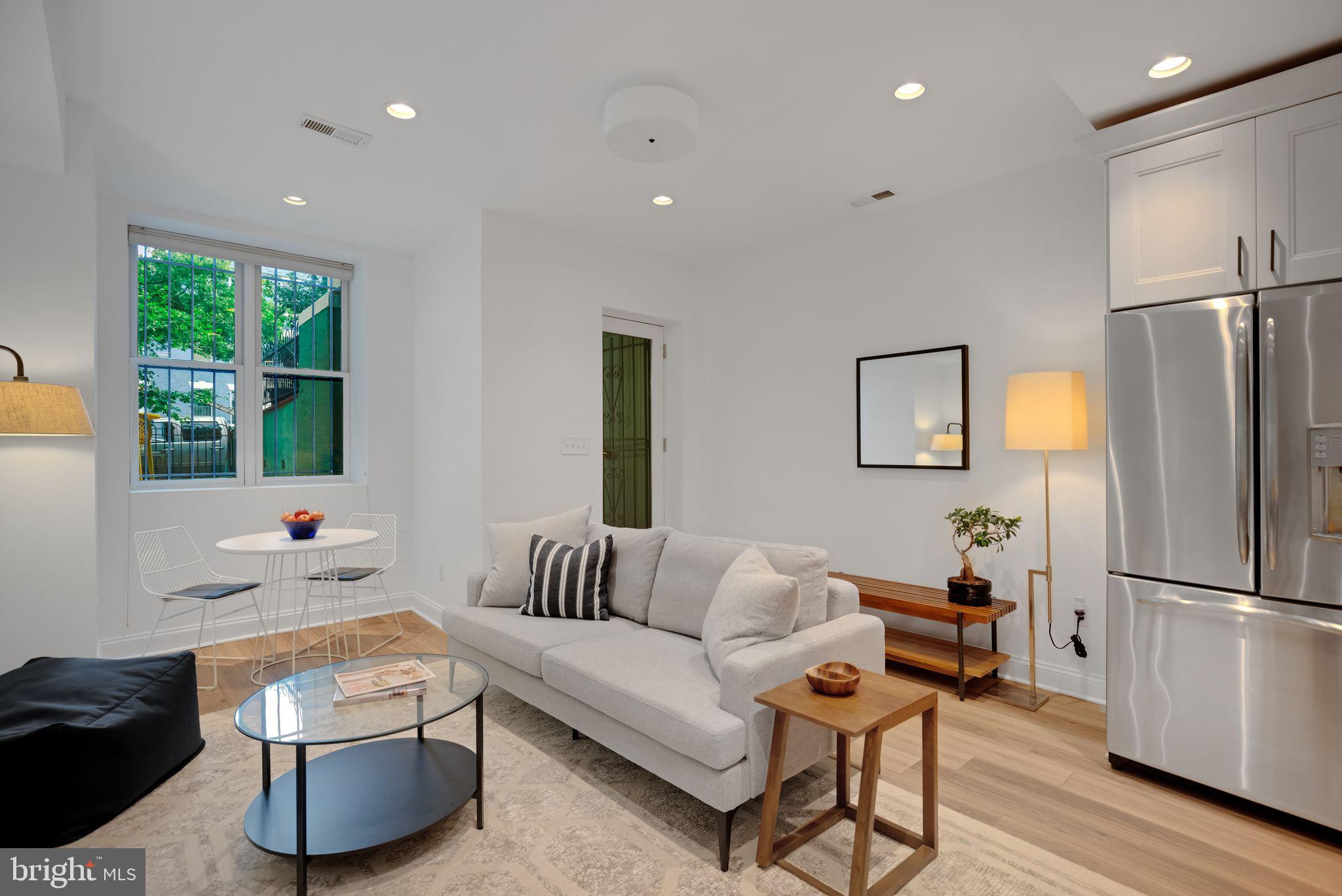 For rent; available beginning June 1st. (Also available for sale for $475,000.) This wide and bright garden-level unit in Columbia Heights offers two bedrooms and two full baths across the entire street-level floor of a converted 4-unit row house. The front of the recently-renovated residence offers an open kitchen/dining/living room with large front window overlooking the unit's private patio with sunny southern exposure. The updated kitchen boasts GE stainless steel appliances and quartz counters, painted cabinets with new hardware and a beautiful new tile backsplash. Gorgeous wide-plank, oak-inspired LVP floors run throughout. The primary bedroom with renovated ensuite bath is large enough for a king-sized bed, while the second bedroom (with separate entrance) easily accommodates a full bed or might be used instead as an office or den. Complete with stacked washer/dryer and a second renovated full bath. High ceilings, recessed lighting throughout and just painted. Pet-friendly with a low condo fee, a Walk Score of 95, a Bike Score of 97 and just steps to the Columbia Heights metro. Don't miss it! Water included. Pets acceptable on a case-by-case basis with additional $200 deposit. Limit 2 pets. Additional monthly pet fee of $25/cat or $50/dog. Background and credit check required. District law requires that a housing provider state that the housing provider will not refuse to rent a rental unit to a person because the person will provide the rental payment, in whole or in part, through a voucher for rental housing assistance provided by the District or federal government.
