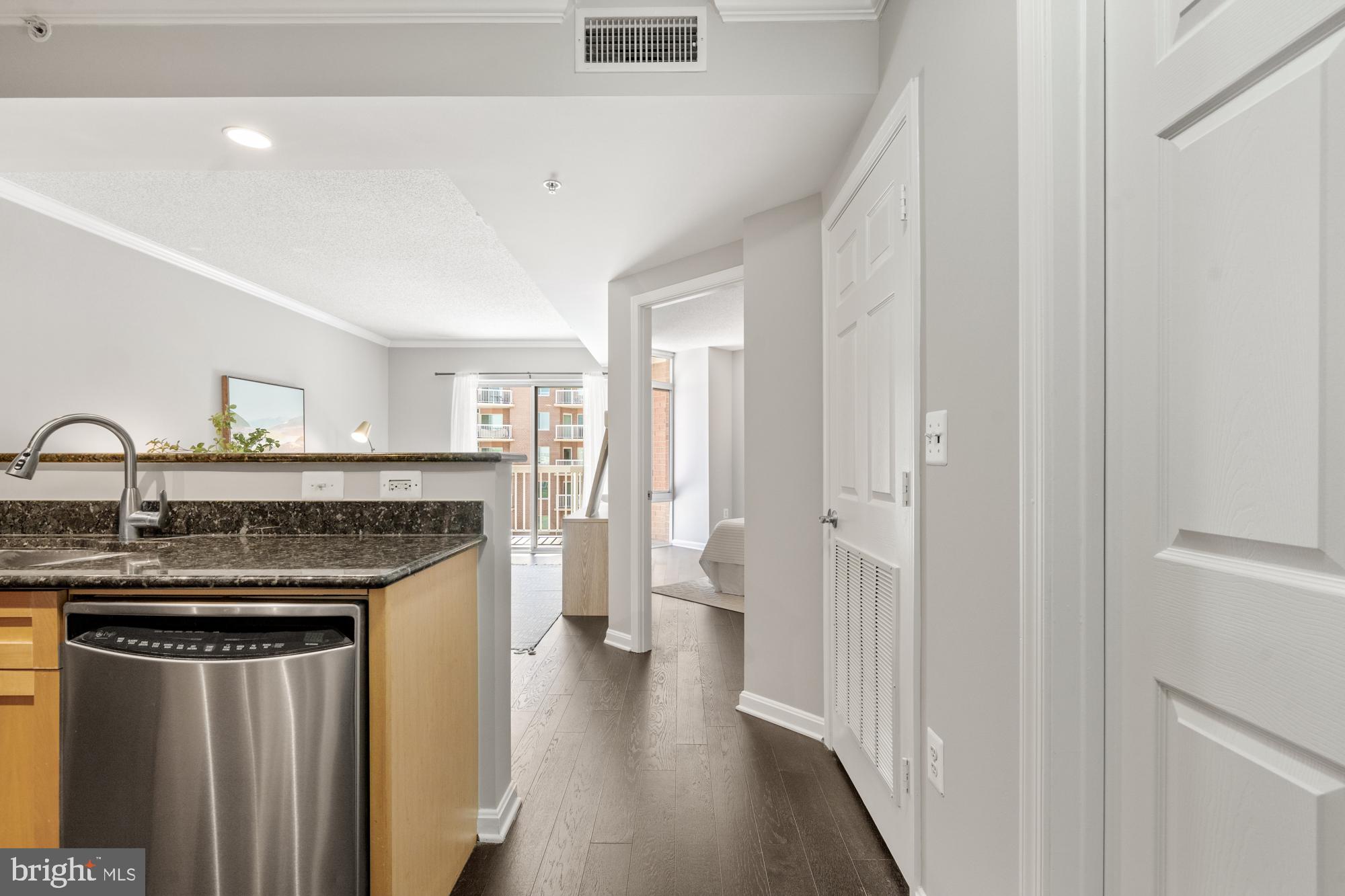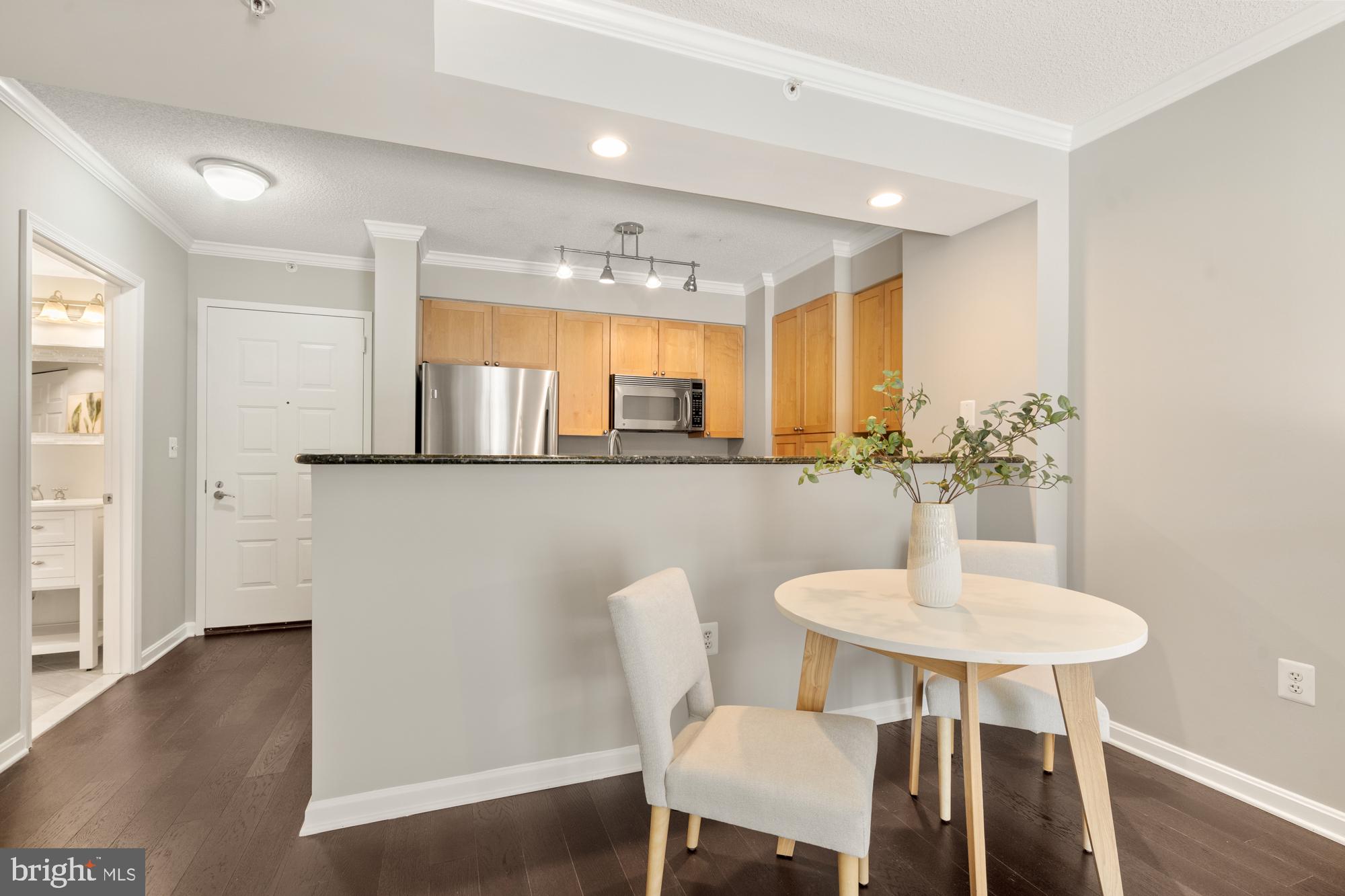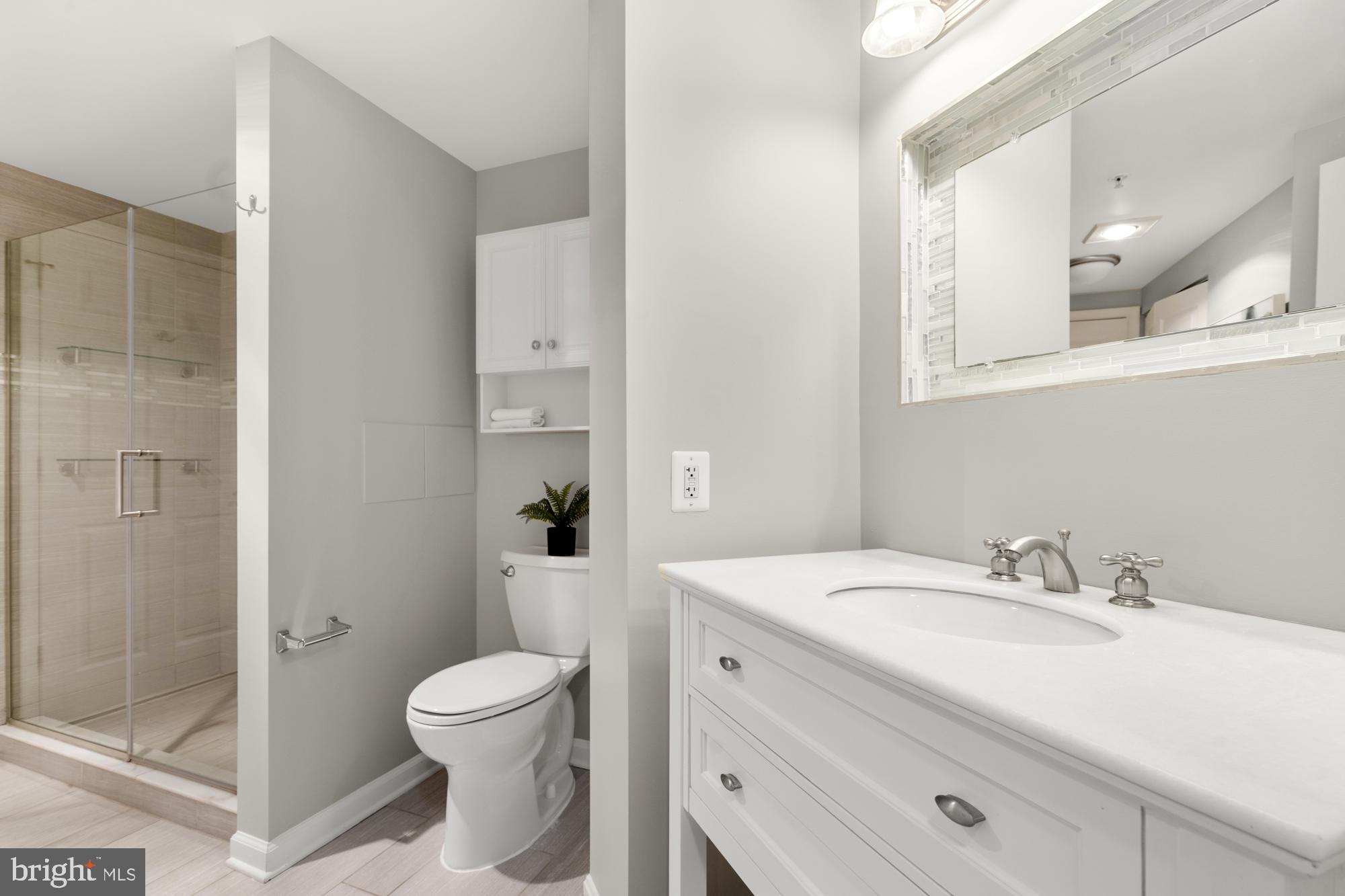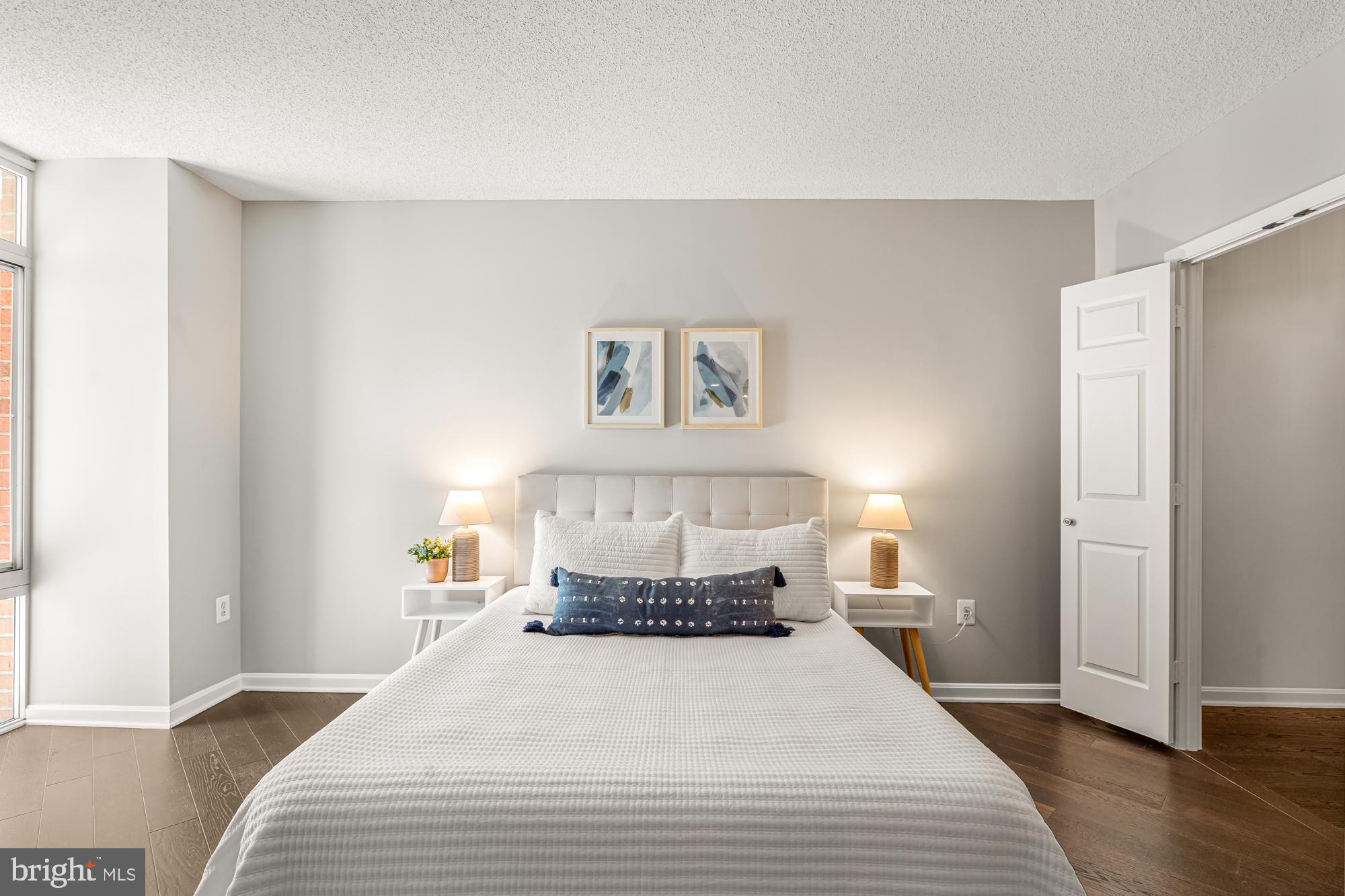 Come see this beautifully upgraded condo with an open floor plan in the upscale Northampton Place! Freshly painted and updated with hardwood floors throughout. The fully-equipped kitchen comes with stainless steel appliances and granite countertops. A seamless flow from the open living room leads to a balcony offering captivating views of DC and the Washington Monument. The primary bedroom features a custom large walk-in closet and an upgraded bathroom with new ceramic tile and in-unit washer/dryer. Residents enjoy a host of amenities, including 24-hour concierge service, outdoor pool, fitness center, internet and screening room, library with billiards and a party room. Located just a 15-minute drive from DC/the Pentagon and numerous other attractions, this condo offers a blend of luxury and accessibility. This residence also comes with one large assigned garage parking space and extra storage!