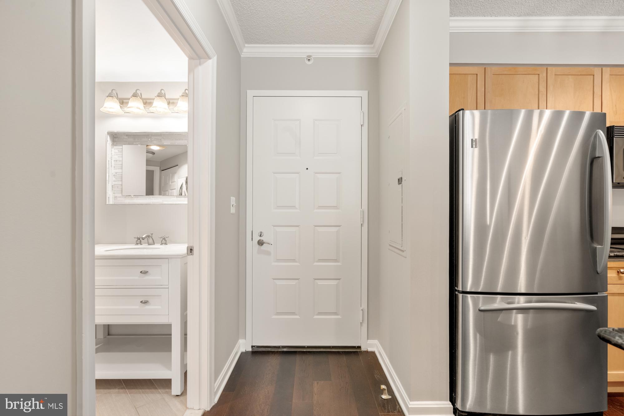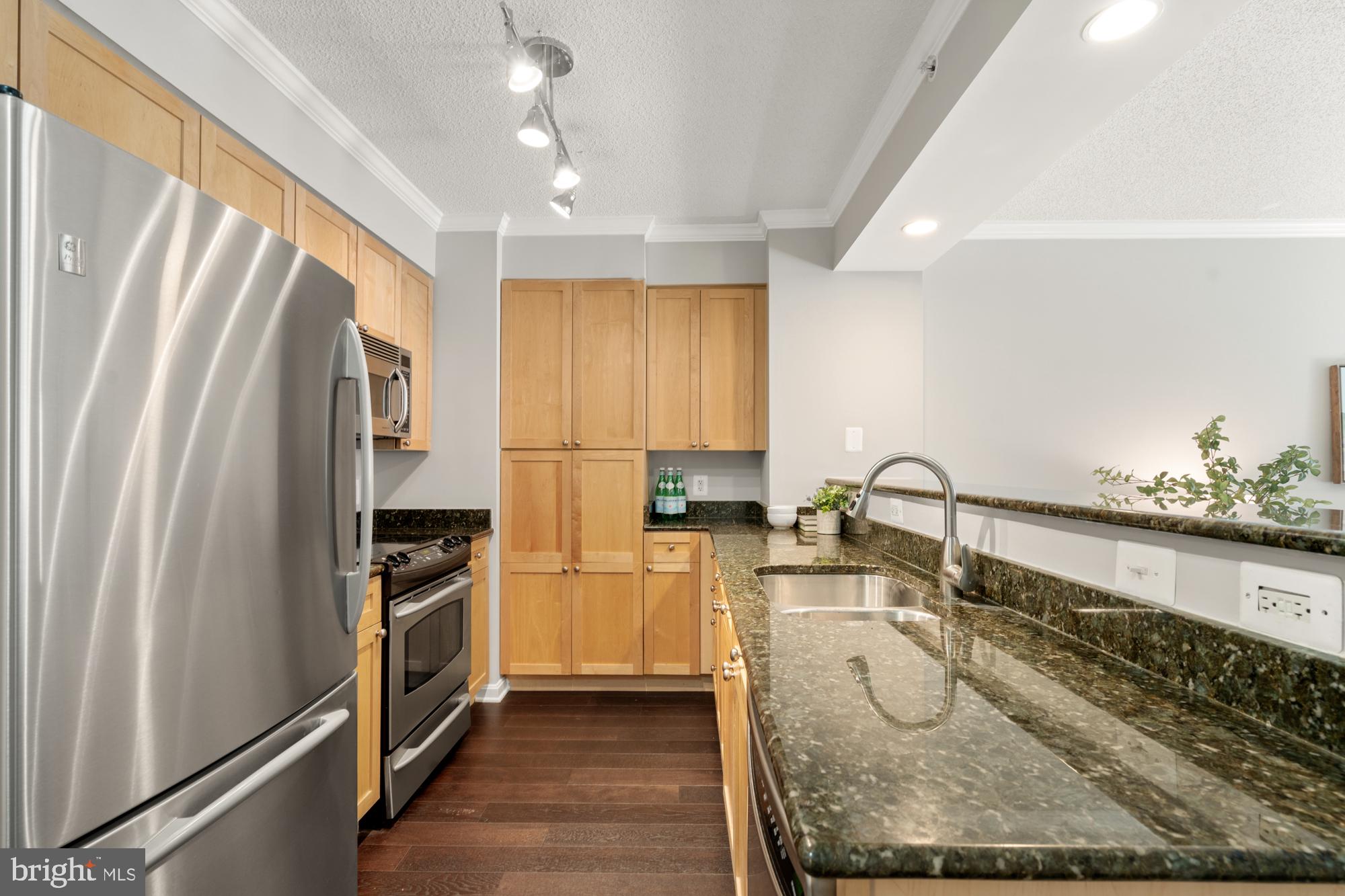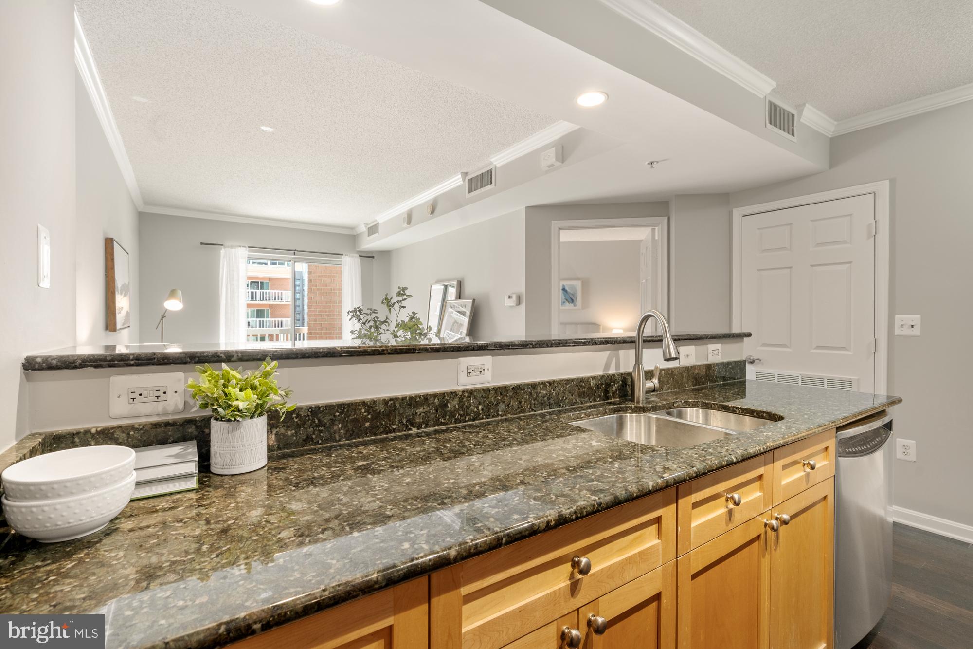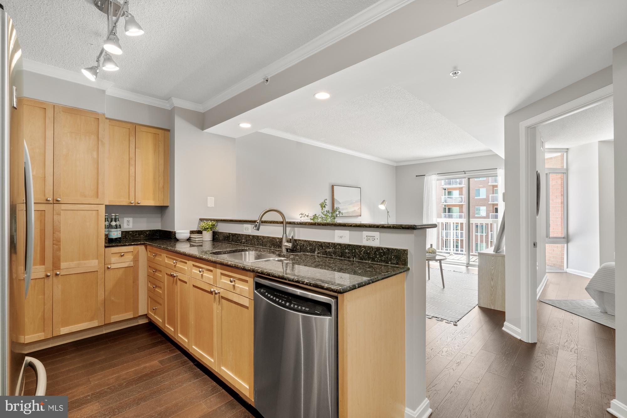 Come see this beautifully upgraded condo with an open floor plan in the upscale Northampton Place! Freshly painted and updated with hardwood floors throughout. The fully-equipped kitchen comes with stainless steel appliances and granite countertops. A seamless flow from the open living room leads to a balcony offering captivating views of DC and the Washington Monument. The primary bedroom features a custom large walk-in closet and an upgraded bathroom with new ceramic tile and in-unit washer/dryer. Residents enjoy a host of amenities, including 24-hour concierge service, outdoor pool, fitness center, internet and screening room, library with billiards and a party room. Located just a 15-minute drive from DC/the Pentagon and numerous other attractions, this condo offers a blend of luxury and accessibility. This residence also comes with one large assigned garage parking space and extra storage!