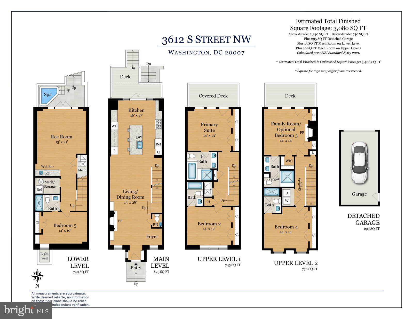 The lower level features a fifth en-suite bedroom with a large window that brings in natural light. A spacious recreation room with a wet bar, beverage cooler, and access to the back patio and hot tub completes the space.