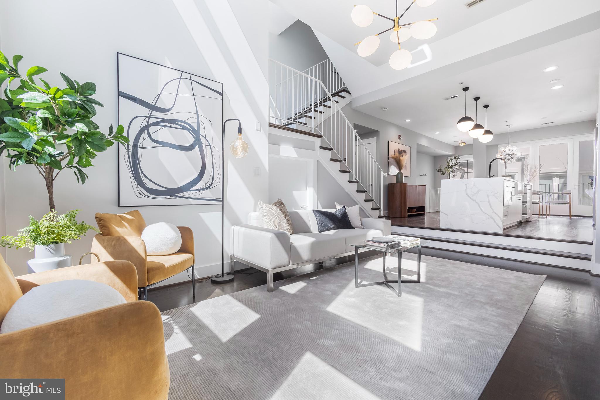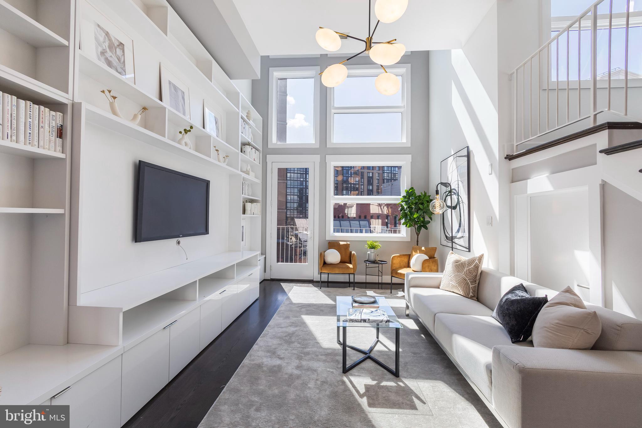 ***OPEN SAT., 9/30, 11-1.*** No cookie-cutter units here, folks! This extraordinary 3-level penthouse residence is a chic 2-bedroom + den/2.5-bath condo unlike anything else you've seen. One of only 10 units in stylish Mount Vernon Court, this freshly-painted home features attractive custom finishes, including oversized windows, a dramatic open floor plan with soaring ceilings, a serene bamboo-lined patio, recently renovated chef's kitchen with custom cabinetry, cultured marble countertops, Liebherr/Wolf/Miele stainless appliances, a custom built-in shelving and storage unit in the living room, spa-inspired baths with Duravit & Grohe fixtures, a stacked washer/dryer, 2 balconies and 2 rooftop patios and coveted garage parking. With a Walk Score and Transit Score of 95, you're just minutes away from the Green and Yellow Metro Lines, the shops and restaurants of City Vista, Mount Vernon Square, NoMa and Shaw. This block of M Street is a quiet oasis in the middle of all the action. Don't miss it!