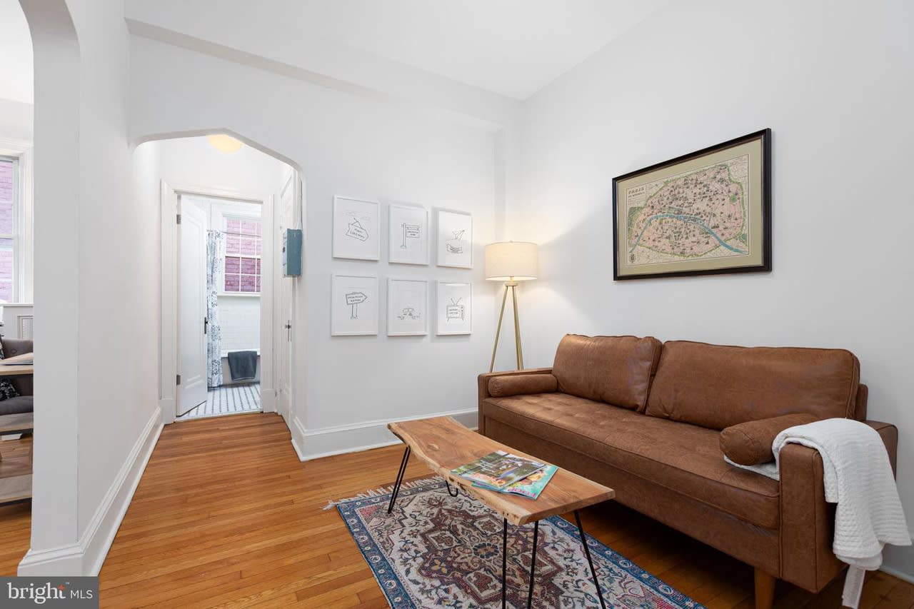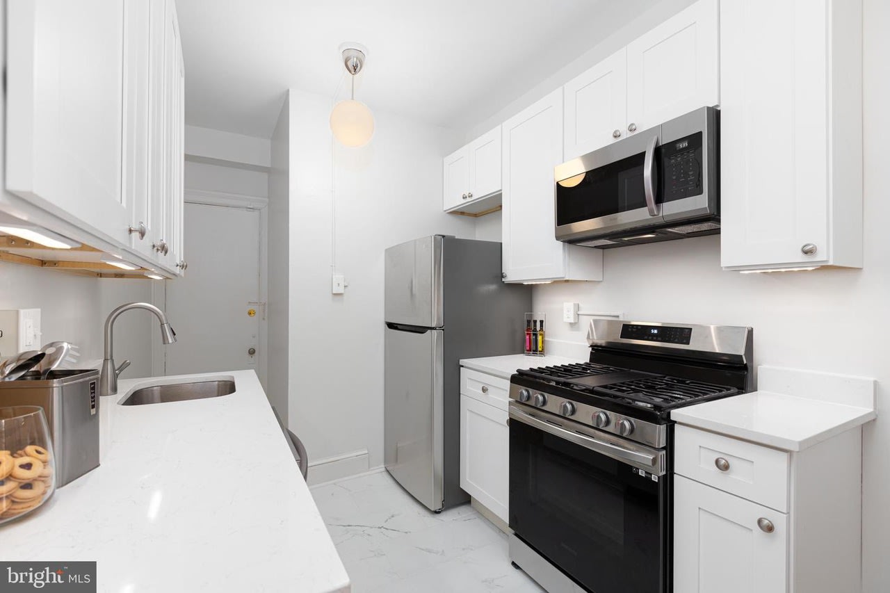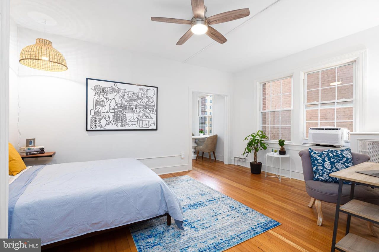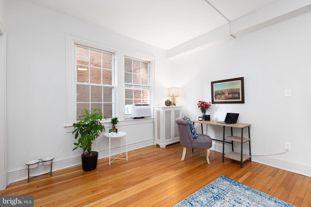 Welcome to The Louie Condominium! This large studio includes a separate living area away from the bedroom area. Step inside to 9’ ceilings, original refinished hardwood floors, original foyer archway, and brand new large eat-in kitchen. There is a walk-in closet in the bedroom area. In the kitchen you will find all new cabinets, stainless steel appliances, quartz countertops, under cabinet lighting, and an area for a small kitchen table and two chairs. The bedroom area is large enough to hold a bed, a couch, and office space to work from home. The unit gets the best afternoon and evening light. In the unit, you will stay cool over the summer with the brand new and quiet Midea window unit that still lets in plentiful natural light. Just ranked the best window unit on the market! In the bathroom step into the shower with the spa-like shower head and you will feel like you are on vacation. New lighting throughout the unit. The Louie condominium is well managed, keeping condo fees low! Condo fee is $254 and even includes heat. Condo fees have only seen a nominal increase twice in ten years. Throughout the building you will see the charm of a well-maintained almost 100-year-old building with all the modern conveniences. In the basement you will find laundry, an exercise room, a bike room, and a storage locker. Because The Louie is on a corner lot we have a nice side yard which is great to relax with a glass of wine on warm summer nights. Just outside the condo is the bus stop for the L1/L2 which takes you downtown to Farragut Square or Foggy Bottom. Step outside the condo and head up to the business district of the neighborhood where there are plenty of restaurants and shops to choose from. Also, in walking distance down Connecticut Ave you will find more restaurant options like Little Red Fox (get the breakfast burrito!), I’m Eddie Cano (one of the best Italian restaurants in the city), and now Italian Bar. Don’t forget Politics and Prose or Comet Ping Pong. If you need the metro, Friendship Heights is less than a mile away. You may have heard of the changes coming to this Chevy Chase neighborhood business district. Check out the Urban Turf article.